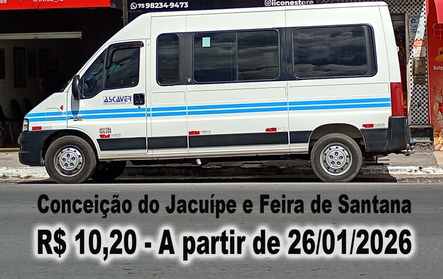 ASCAVER reajusta tarifa entre Conceição do Jacuípe e Feira de Santana, R$ 10,20