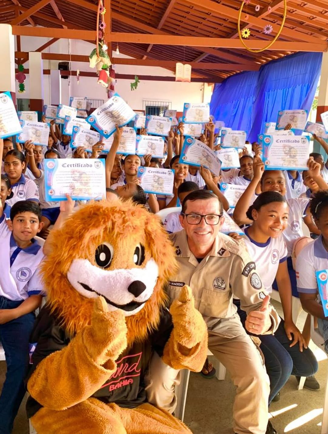 A cerimônia de encerramento contou com a presença da Comandante da OPM, a Maj PM Lilian, o Ten PM Ladson, comandante do 3º Pel, o instrutor do PROERD, SGT PM Macedo, Secretário de Educação, Prof Joelson Silva, a equipe escolar, familiares e demais autoridades.