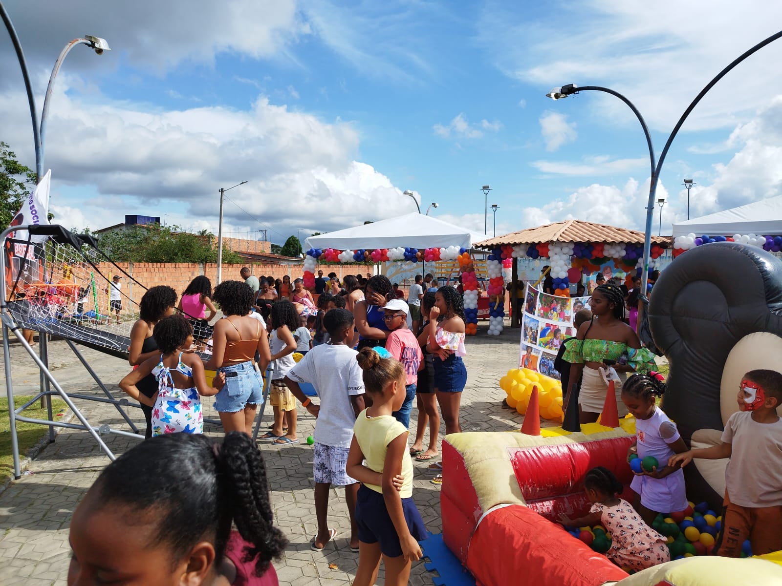A ação contou com distribuição de lanches, lembrancinhas, além de brinquedos como pula-pula, basquete eletrônico, piscina de bolinhas, pintura de rosto, e banho de carro pipa garantindo momentos de pura alegria para as crianças da comunidade.