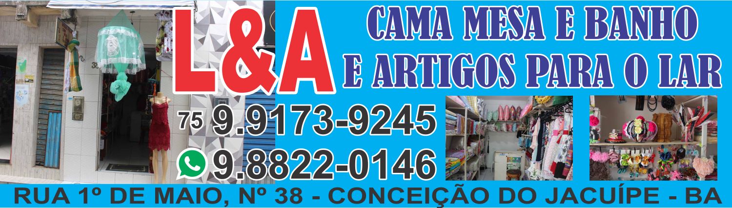 A loja L&A Cama, Mesa, Banho e Artigos para o Lar, localizada na Rua Primeiro de Maio, no Centro de Conceição do Jacuípe, está com ofertas imperdíveis para quem quer deixar a casa ainda mais bonita e aconchegante!