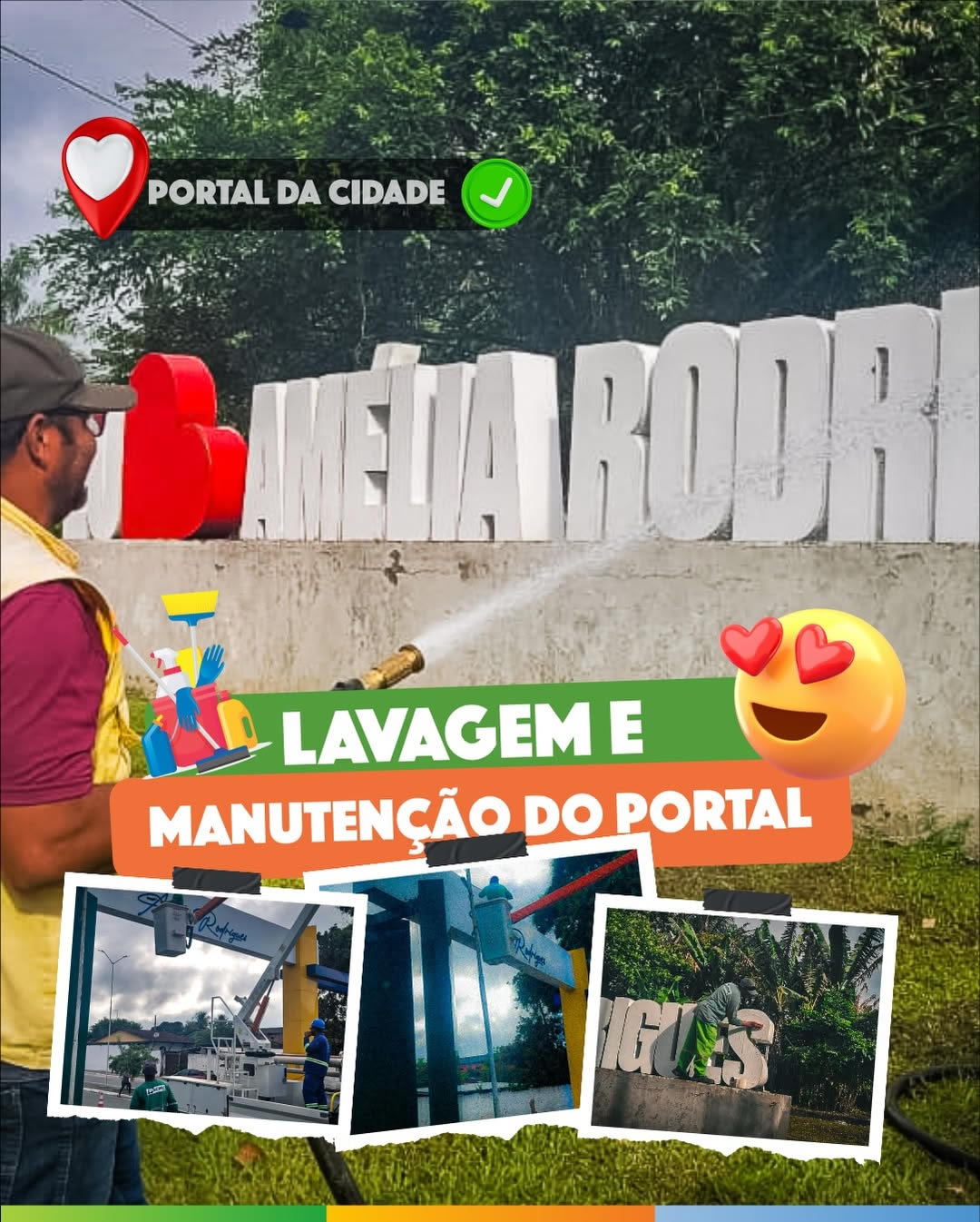 Lavagem e manutenção deixam o portal de entrada de Amélia Rodrigues ainda mais bonito