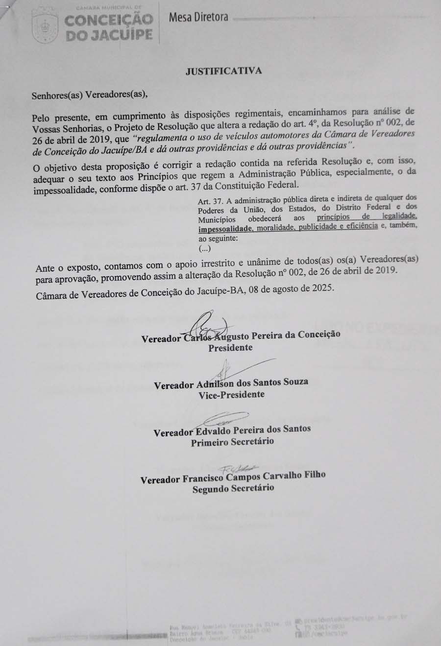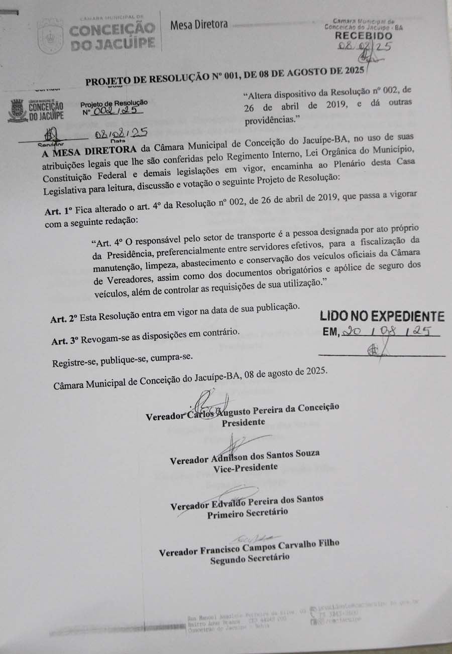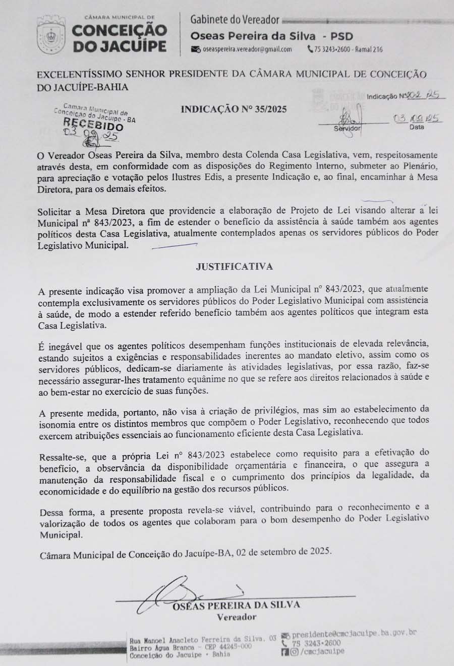 Na sessão da Câmara de Conceição do Jacuípe desta quarta-feira, 10 de setembro de 2025, o Vereador Oseas apresentou uma indicação solicitando a construção de um abrigo para os alunos na Estrada Nilo Coelho, garantindo proteção aos estudantes enquanto aguardam o transporte escolar.