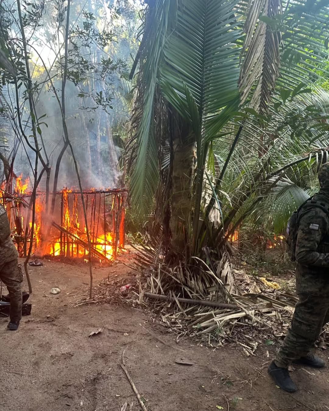Durante a progressão das patrulhas até a área de mata, as equipes foram recebidas por disparos de arma de fogo, sendo necessário o revide à injusta agressão. Após cessado o confronto, os suspeitos abandonaram o local e fugiram, deixando para trás o acampamento e todo o material ilícito.