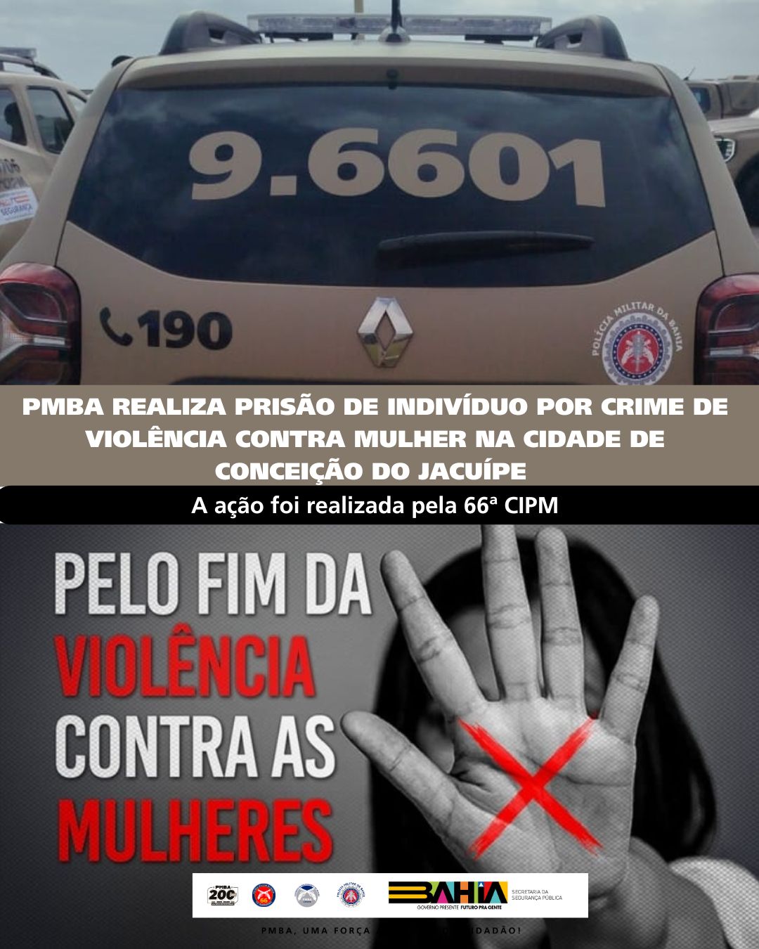 Na manhã deste domingo, 25 de janeiro de 2026, policiais militares da 66ª CIPM atenderam a uma ocorrência de violência contra a mulher no bairro Caiçara, em Conceição do Jacuípe.