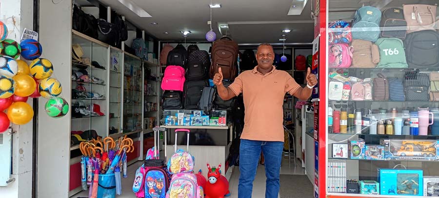 O empresário Léo Variedades está movimentando o comércio de Conceição do Jacuípe ao adotar a "onda do momento": divulgar suas lojas com frases de efeito e o carismático sacudir de ombros.