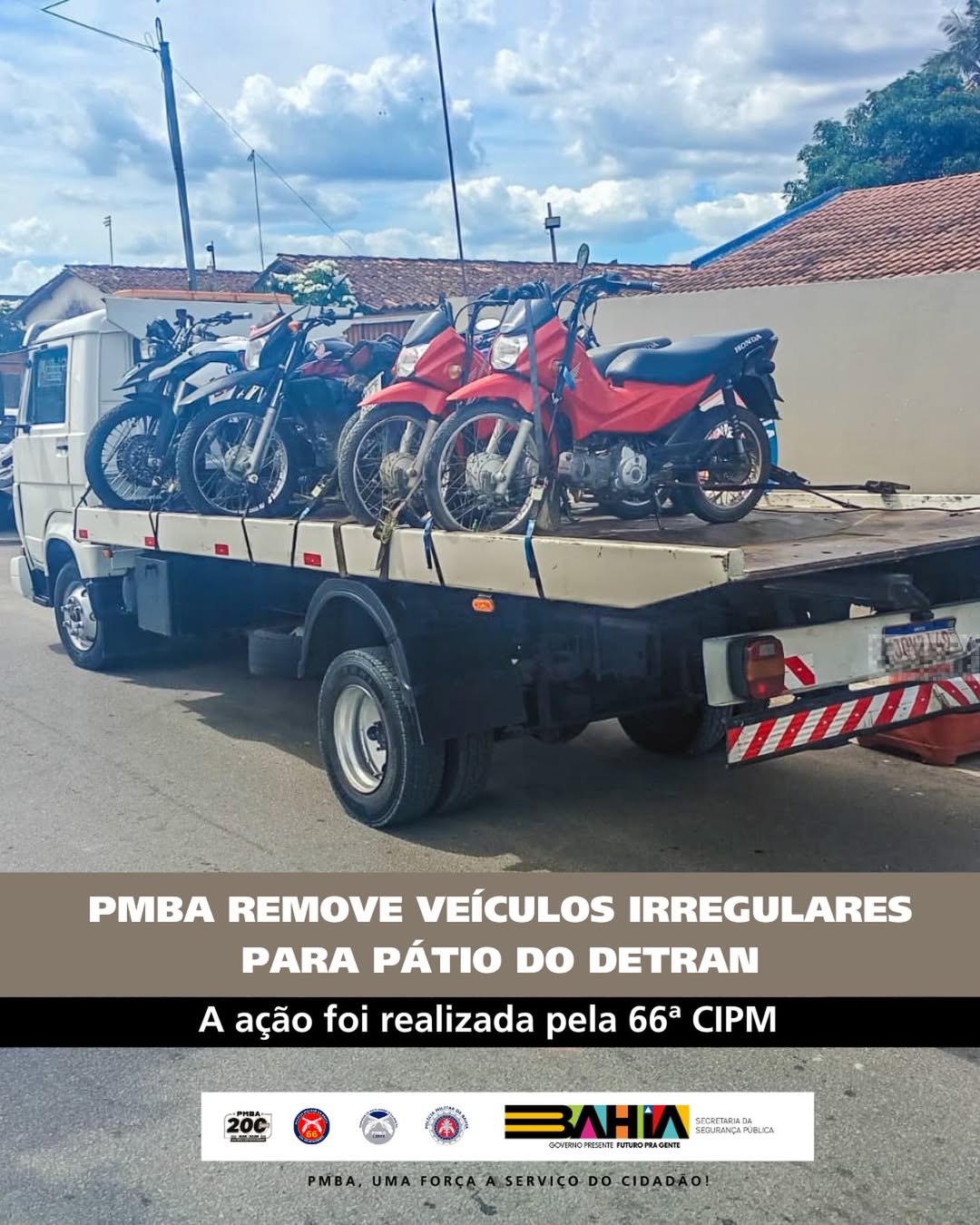 ![]() 66ª CIPM remove veículos irregulares para pátio do DETRAN |