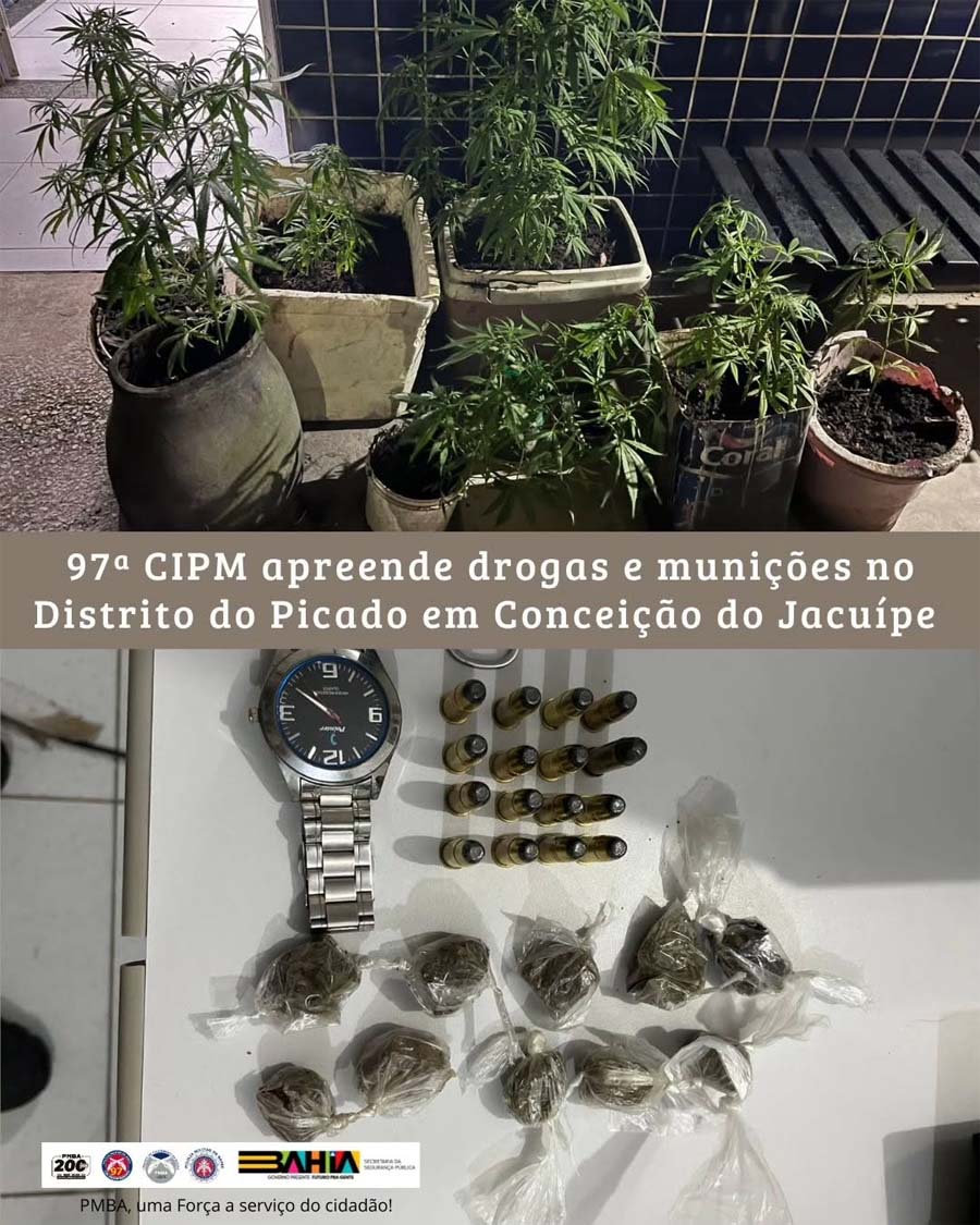 Em mais uma ação de intensificação do policiamento no Distrito do Picado, em Conceição do Jacuípe, a Polícia Militar localizou drogas e munições em um imóvel aparentemente abandonado.