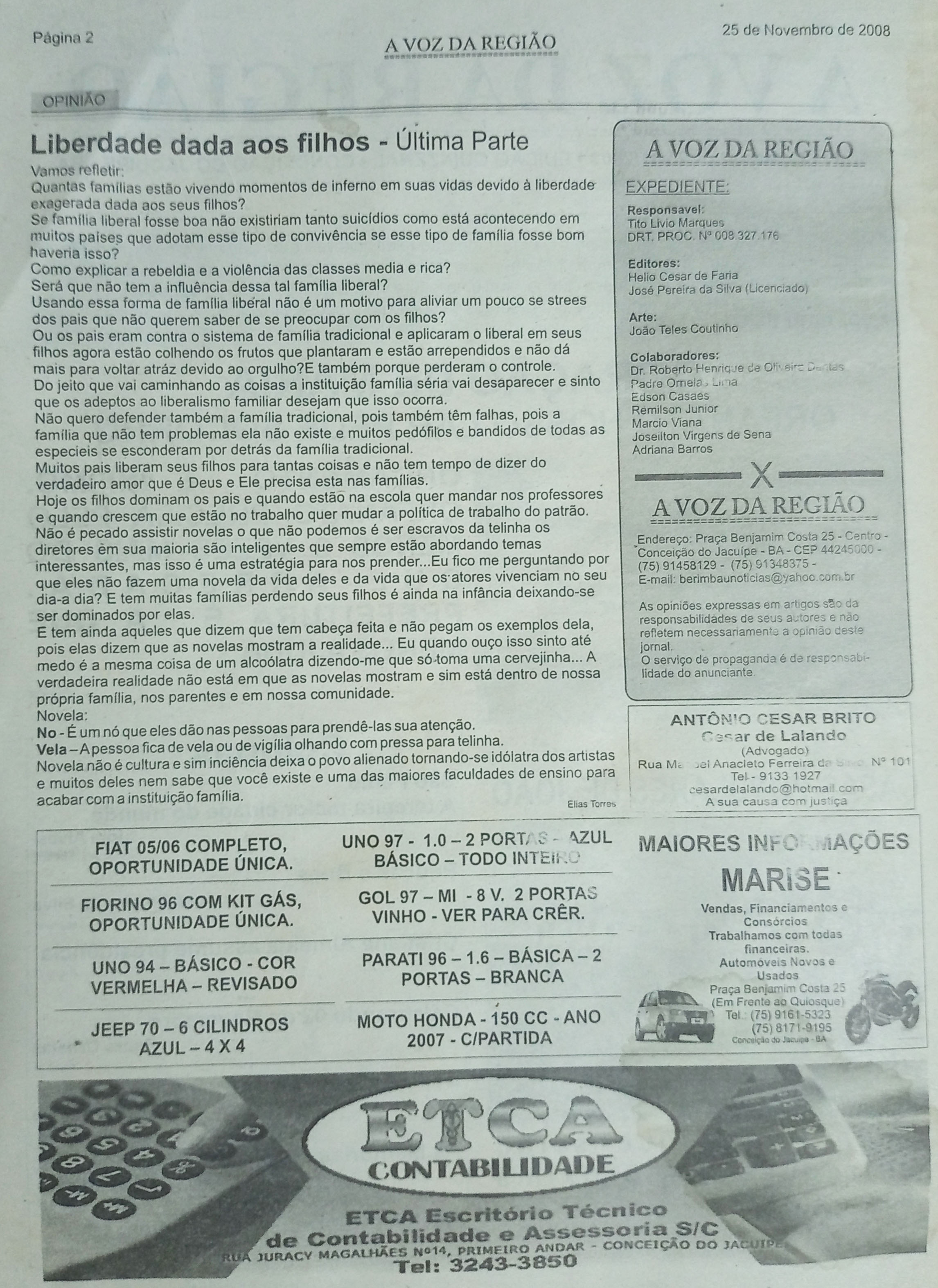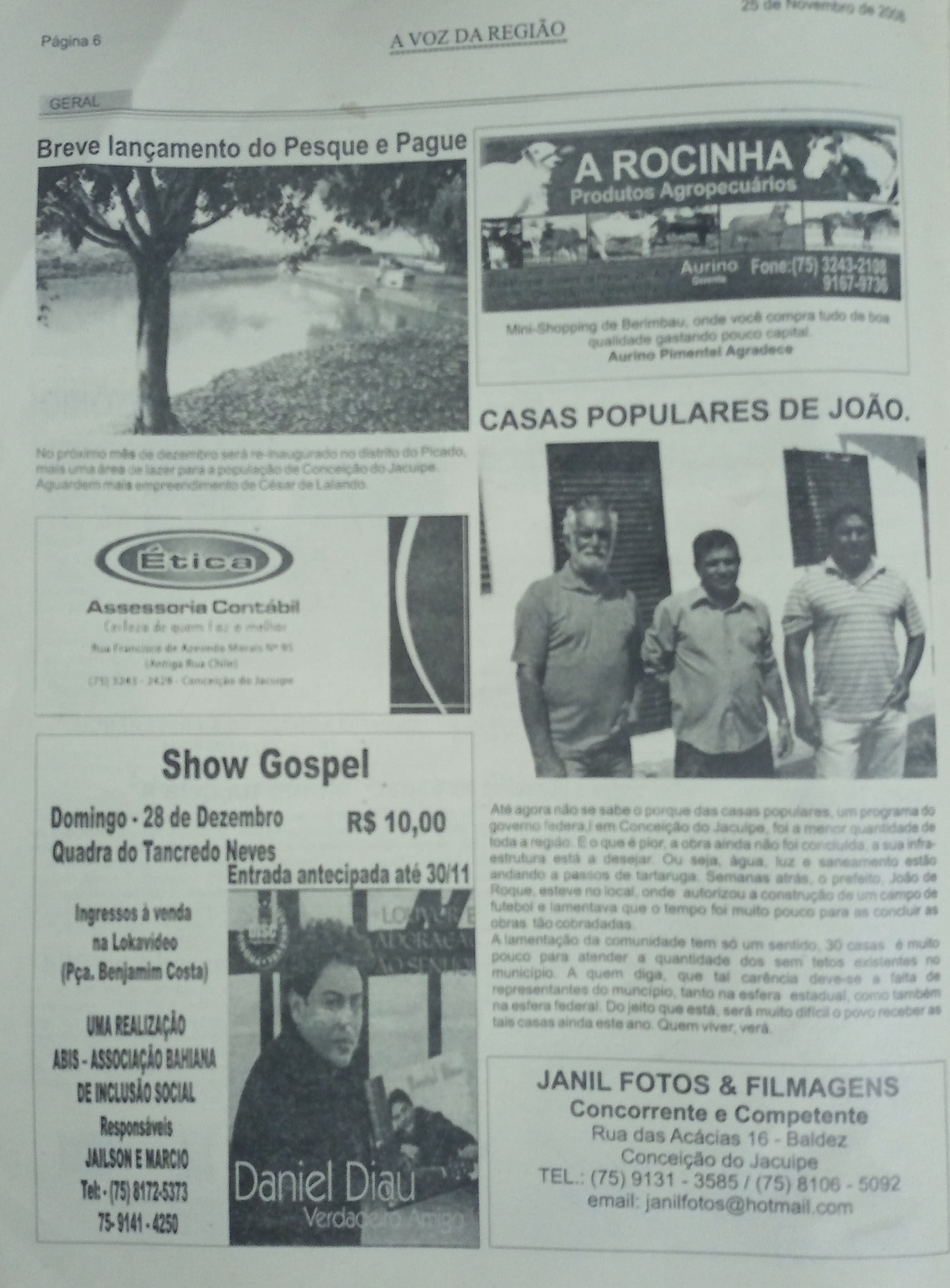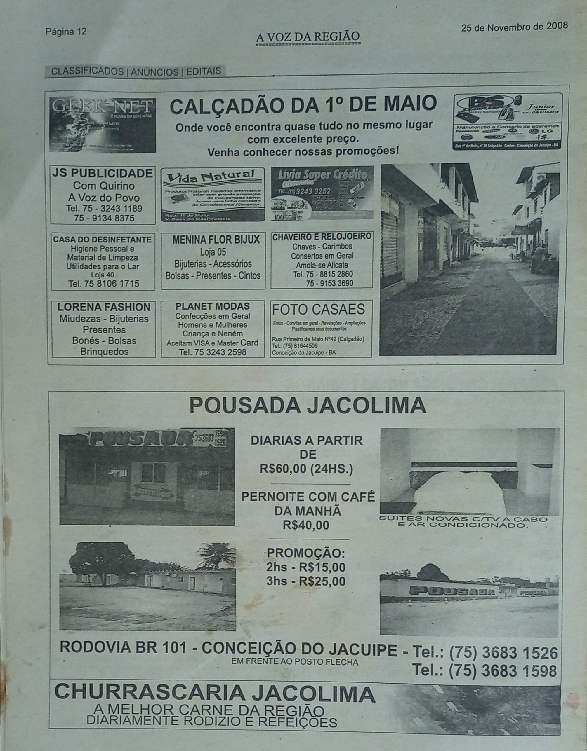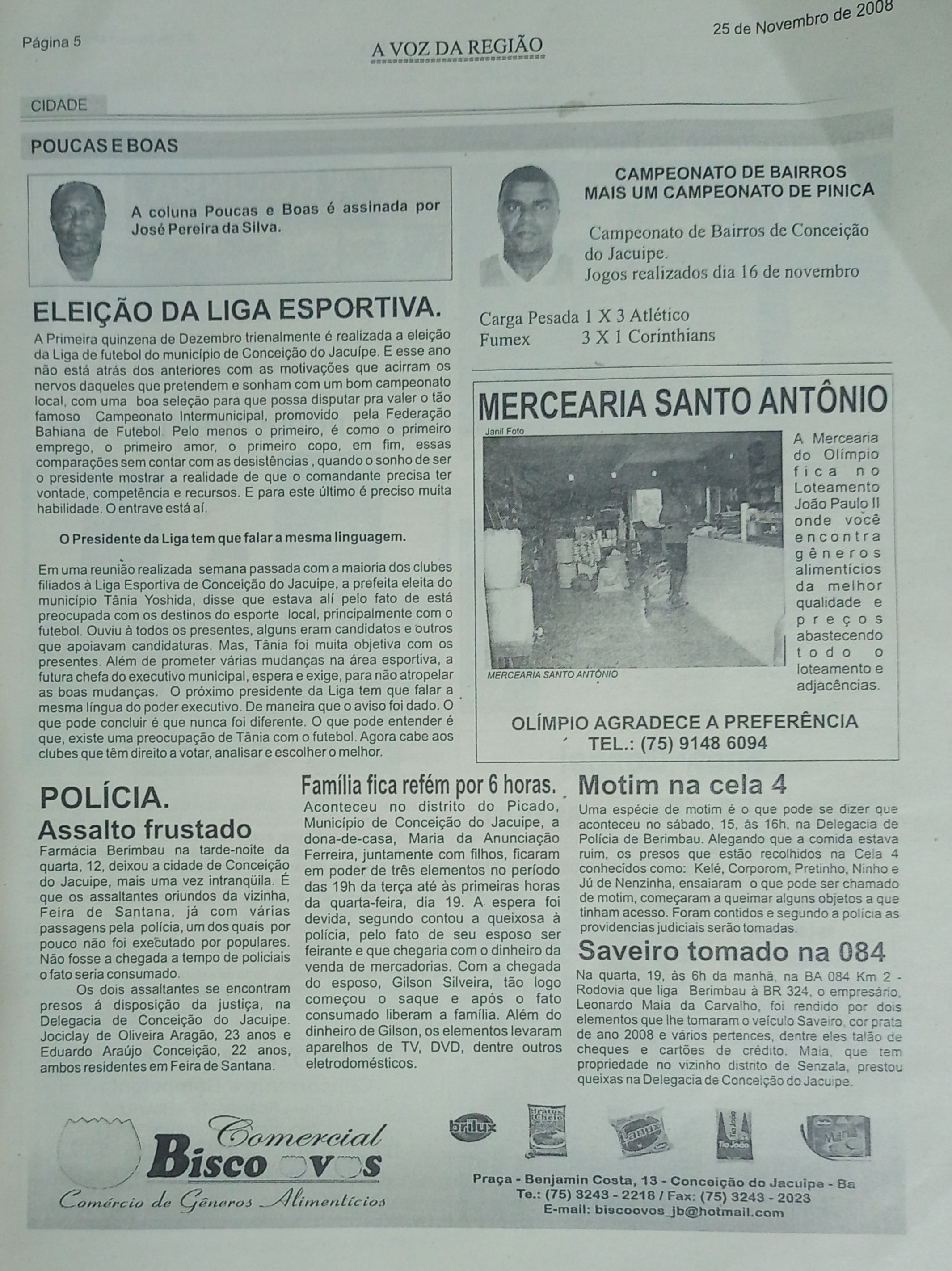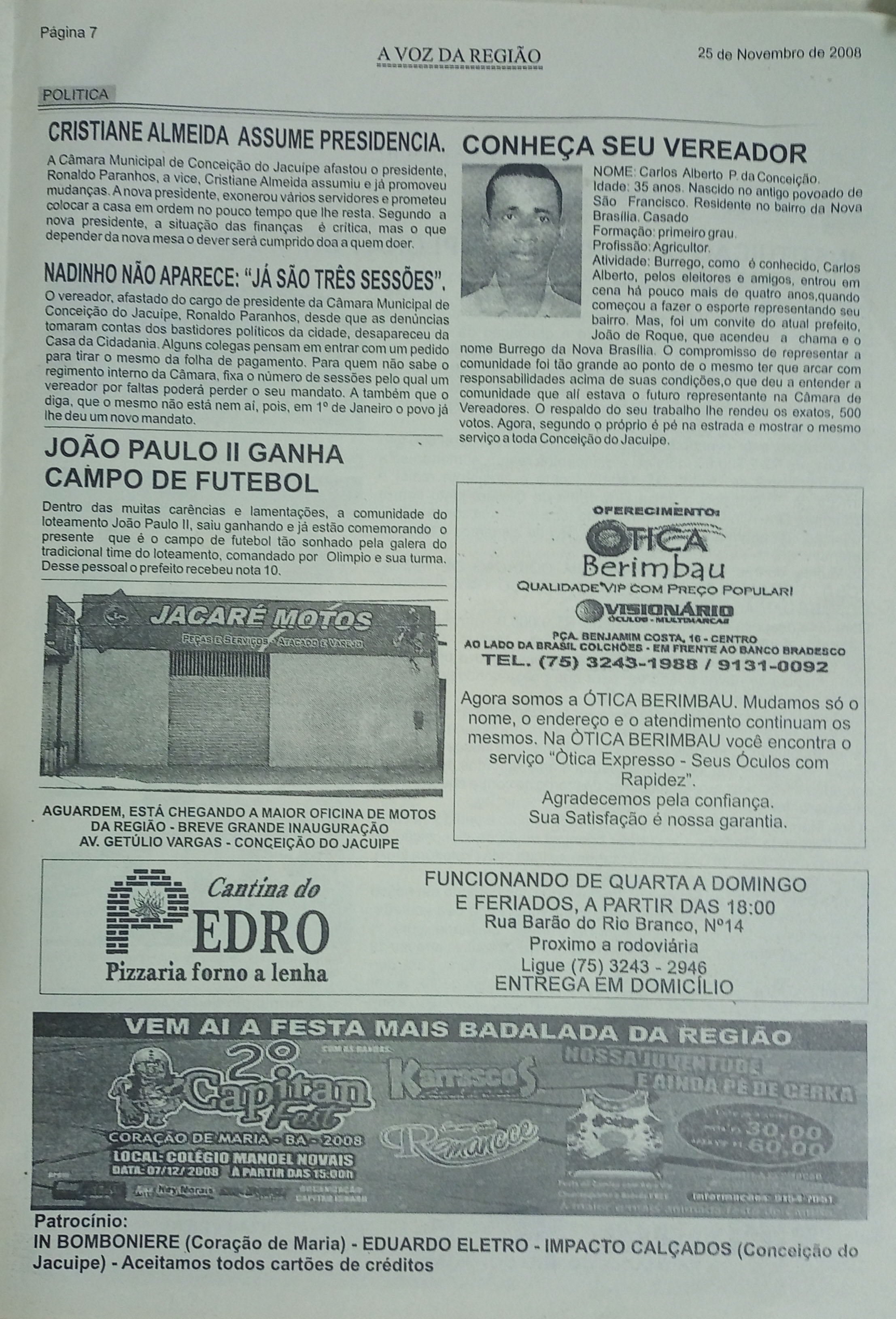 No dia 25 de novembro de 2008, circulava uma edição marcante do jornal impresso A Voz da Região, que trouxe ao público matérias relevantes e de grande interesse para as cidades de Conceição do Jacuípe, Coração de Maria, Amélia Rodrigues e região.