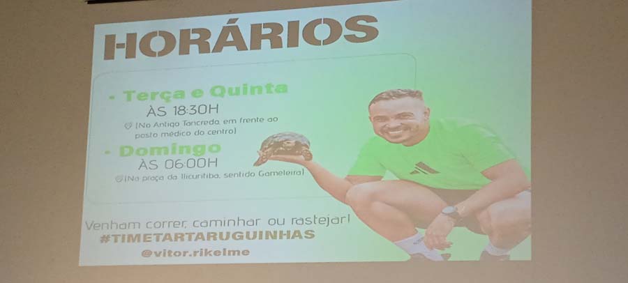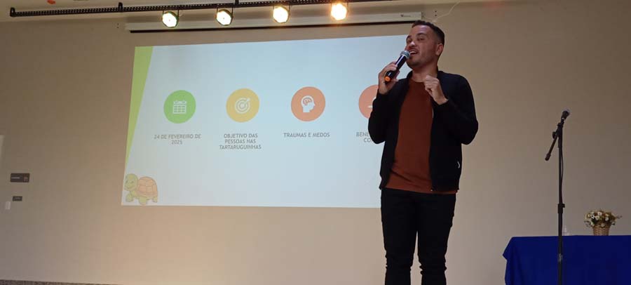 Antes da palestra principal, o jovem Vitor Rikelme apresentou o projeto “As Tartaruguinhas”, criado em Conceição do Jacuípe, que busca promover o bem-estar e o fortalecimento emocional através da prática de corridas.