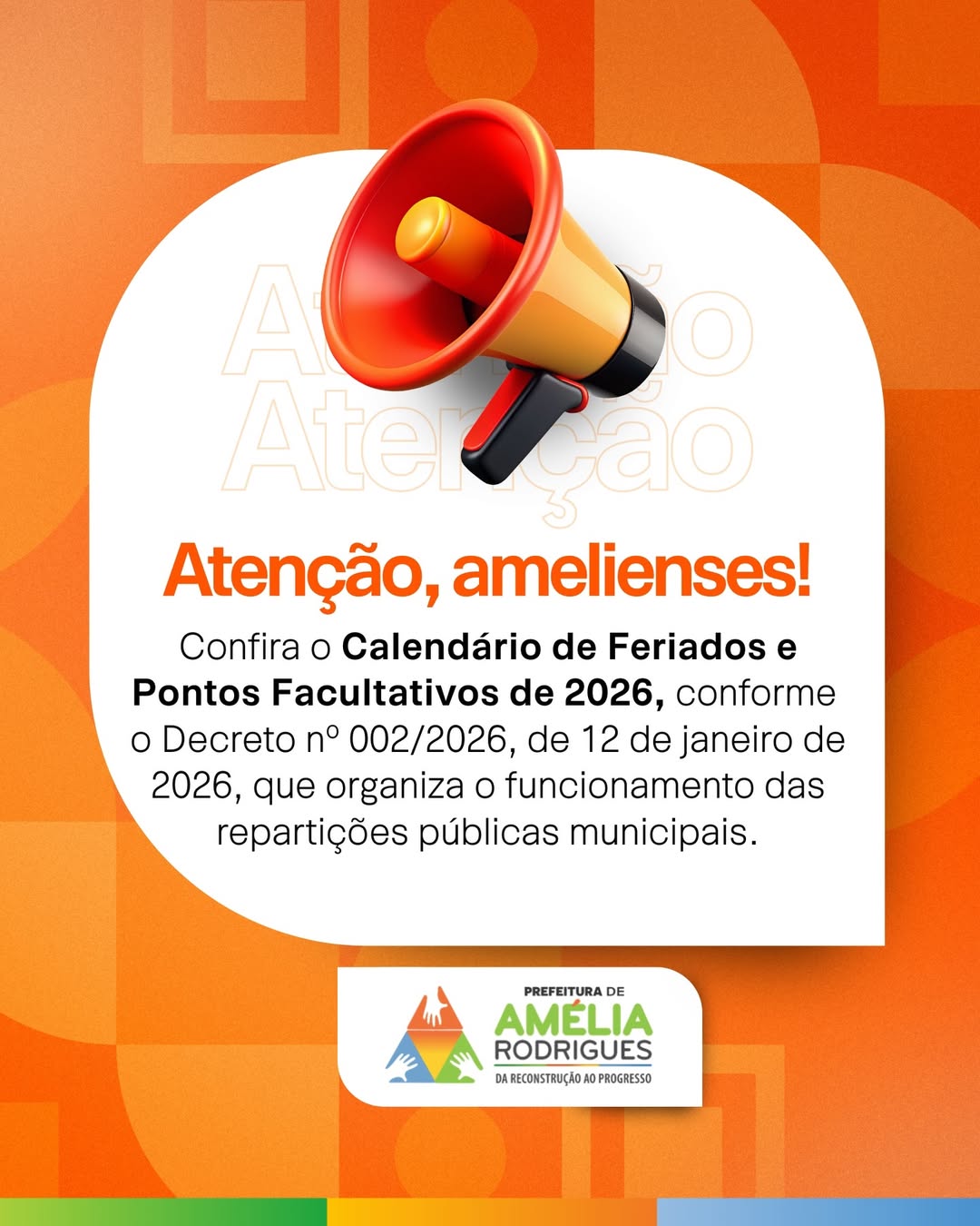 Já está disponível o Calendário de Feriados e Pontos Facultativos de 2026, conforme o Decreto nº 002/2026, de 12 de janeiro de 2026.
