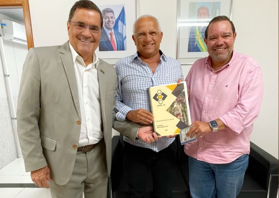 O Prefeito de Amélia Rodrigues, João Bahia, ao lado do deputado Ângelo Almeida e do secretário de Obras, Davi Grilo, foram tratadas pautas estratégicas em órgãos fundamentais como a CERB, o DNIT e o DETRAN.