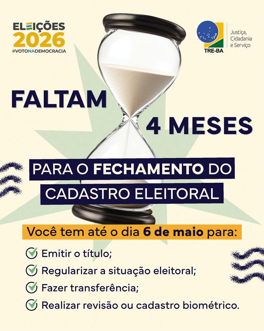 O Tribunal Regional Eleitoral (TRE) abriu o prazo para inscrições e regularização do título de eleitor, que segue até o dia 6 de maio.