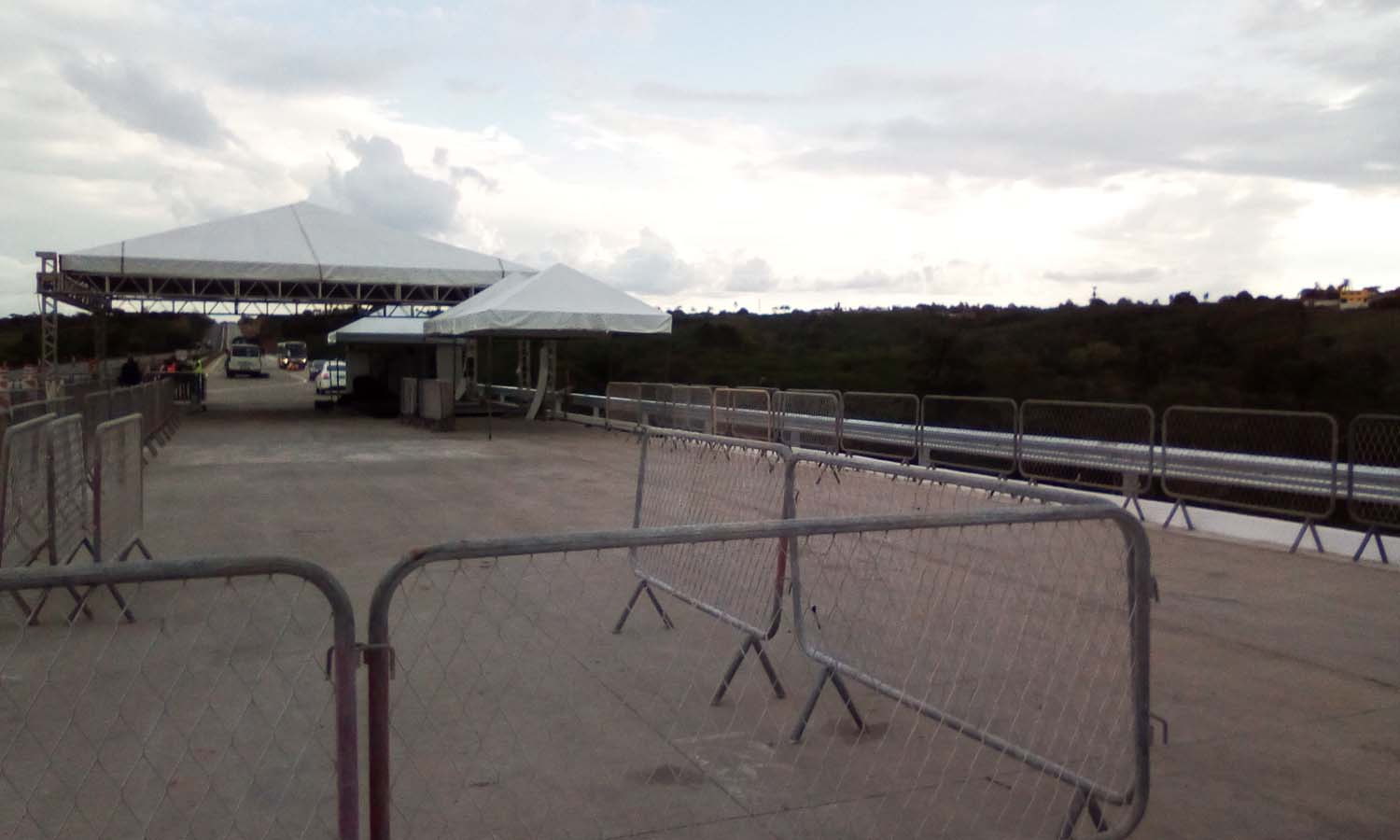 A estrutura para recepcionar o Presidente foi montada na própria BR-101, região após o Deiró, subindo sentido Feira.