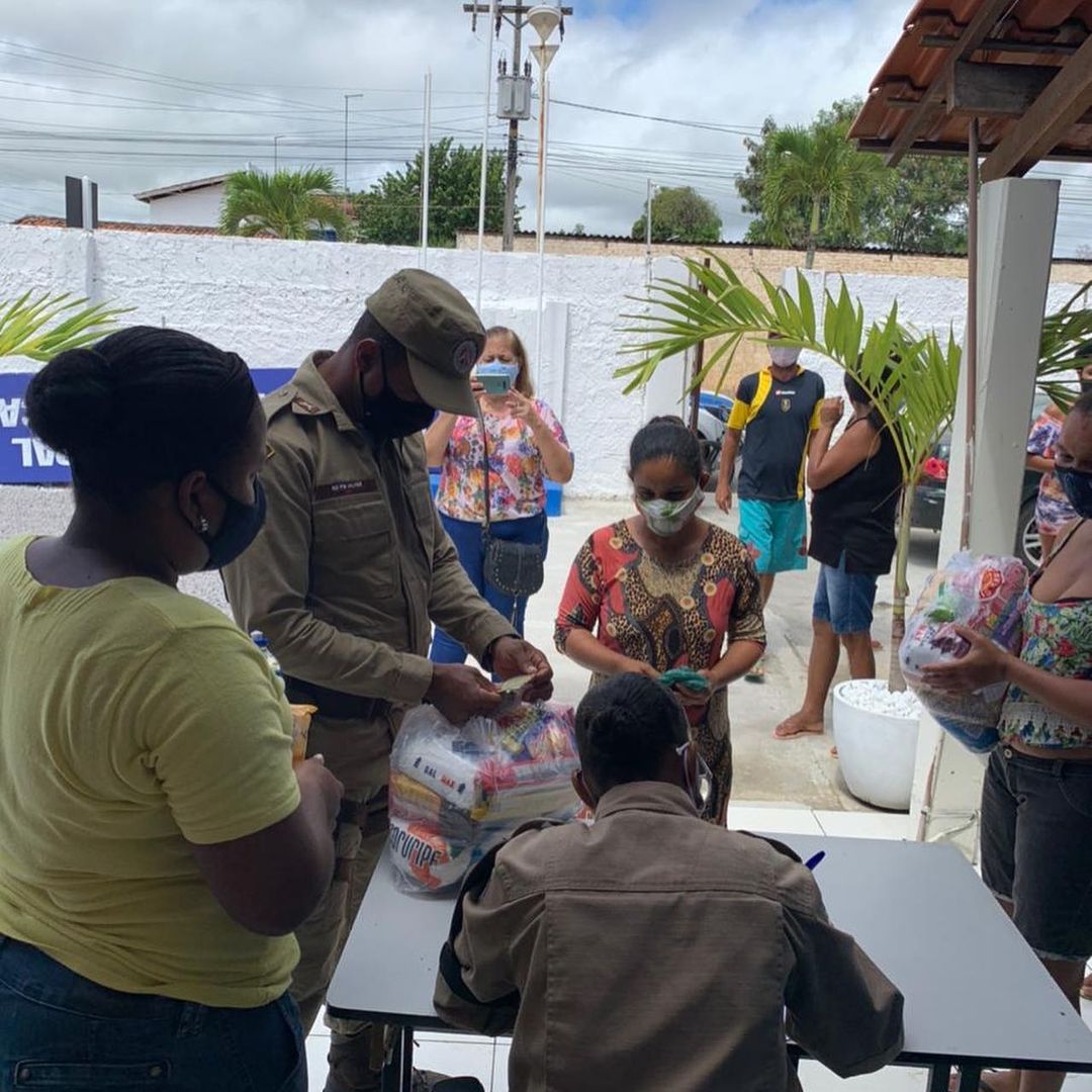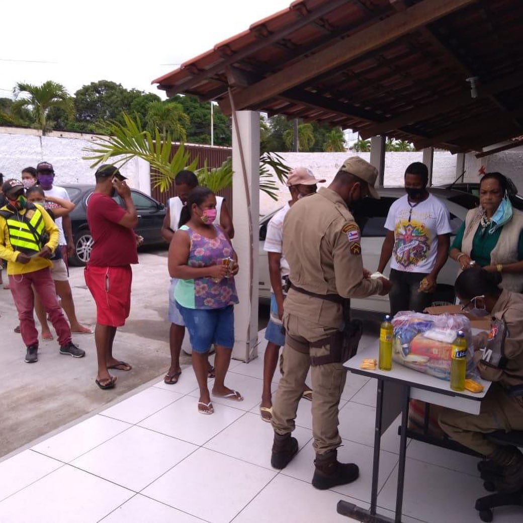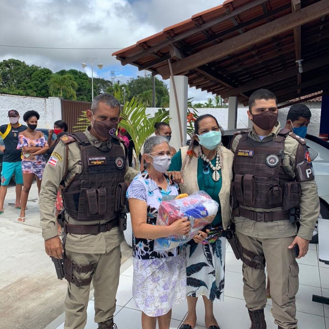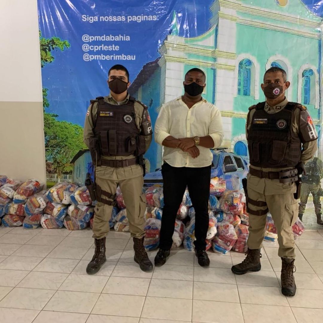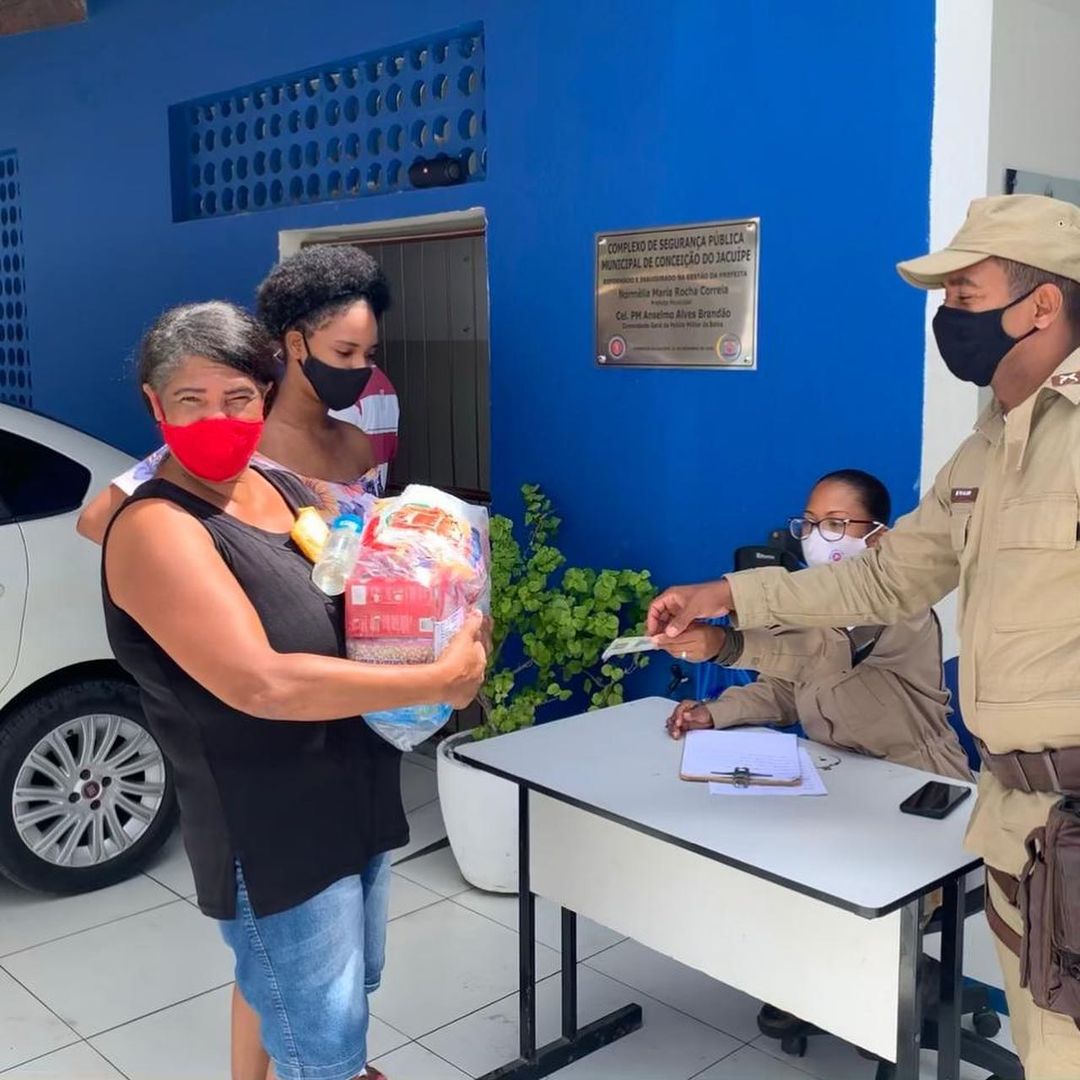 Na manhã dessa sexta-feira, 16 de abril de 2021, no 5° Pelotão da PM de Conceição do Jacuípe, com a presença do Comandante da 20ª Companhia Independente de Polícia Militar de Santo Amaro, Major PM Roberto Castro, FORAM DISTRIBUÍDAS 90 (noventa) CESTAS BÁSICAS em ação conjunta com empresários do grupo GNC e das lideres comunitárias Tia Lu e D. Divina Malvar.