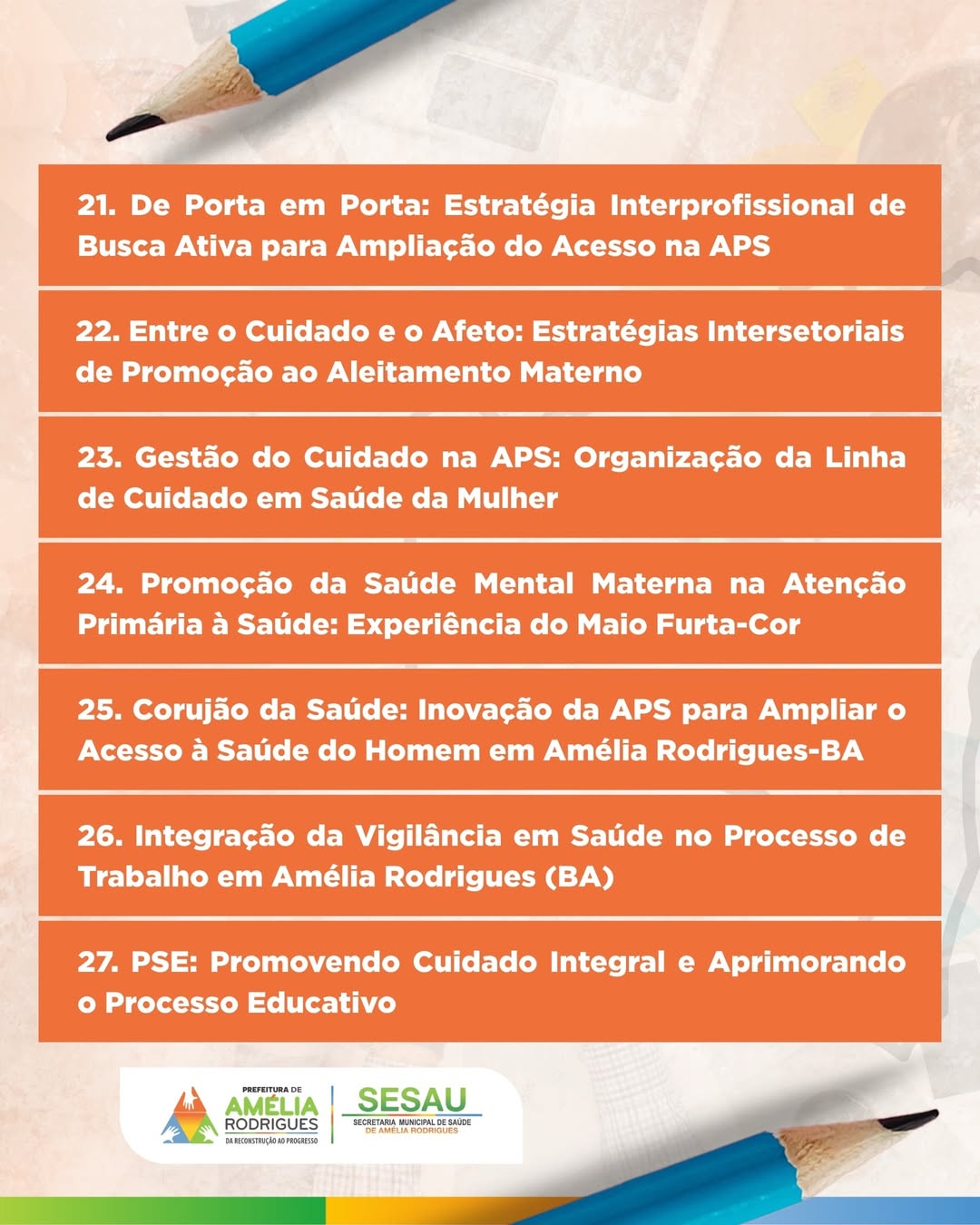 Os projetos apresentados refletem ações que impactam diretamente a vida dos moradores, promovendo melhorias no atendimento, prevenção de doenças e ampliação do acesso aos serviços.