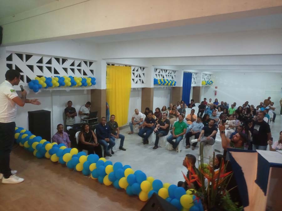 O deputado Diego Castro conversou individualmente e coletivamente com candidatos e lideranças do PL de Conceição do Jacuípe e discursou na convenção.
