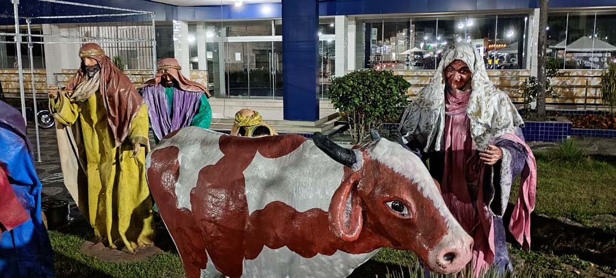 De última hora, a Prefeitura decidiu montar uma decoração de Natal na Praça Manoel Teixeira, em frente à Igreja Matriz, incluindo iluminação e um presépio. No entanto, a montagem apressada acabou gerando repercussão negativa. Nesta quinta-feira, 19 de dezembro de 2025, diversos cidadãos passaram a comentar nas redes sociais que uma das peças do presépio parecia mais uma “bruxa” do que uma figura tradicional do Natal.
