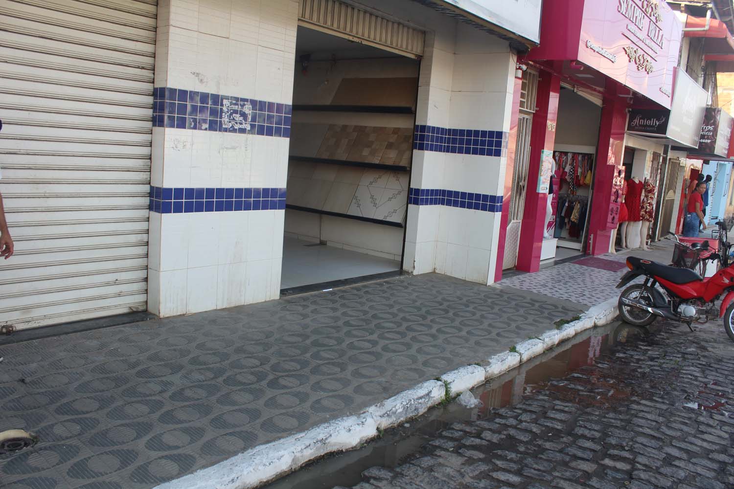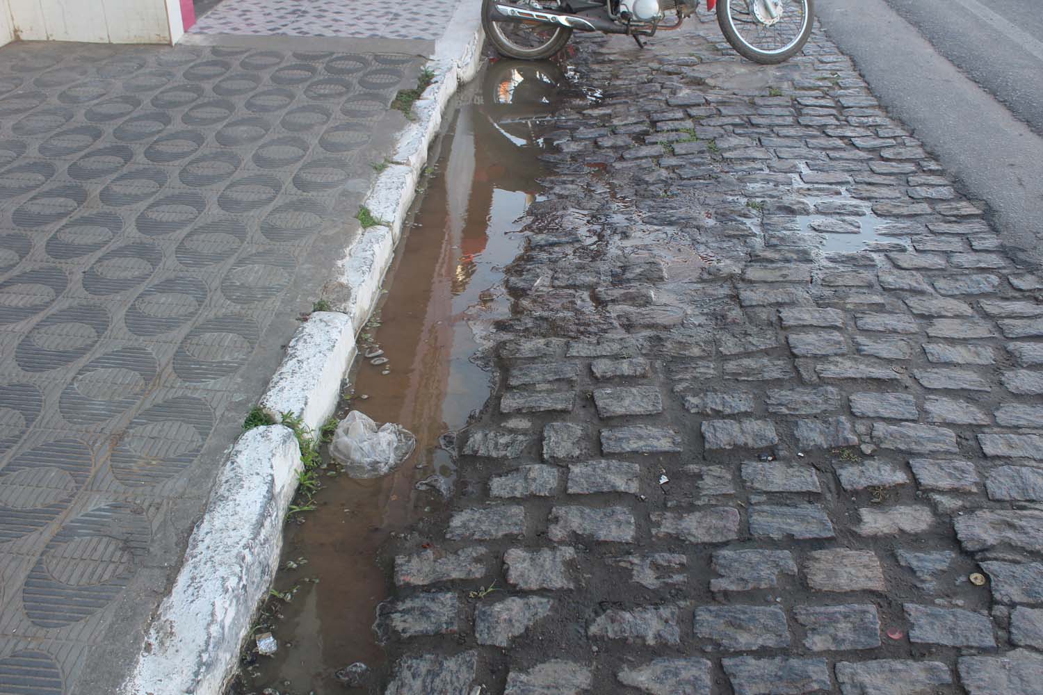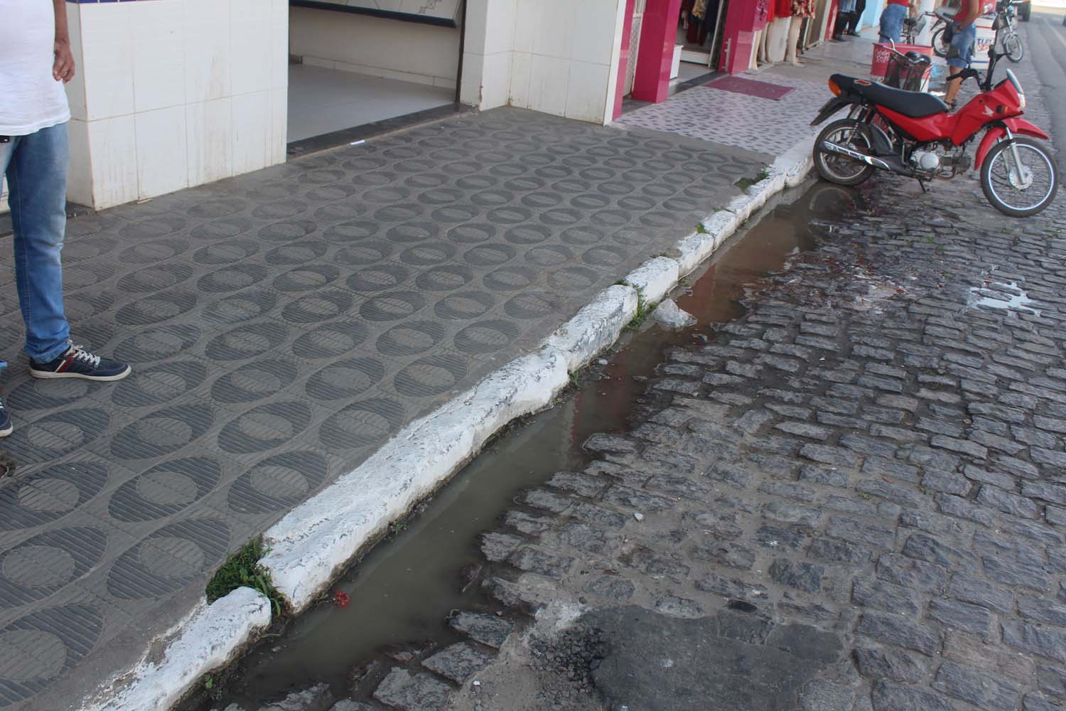 Na Av. Getulio Vargas, rua principal de Conceição do Jacuípe, um vazamento de água da Embasa vem provocando problemas para os comerciantes da localidade e risco nas estruturas das construções.