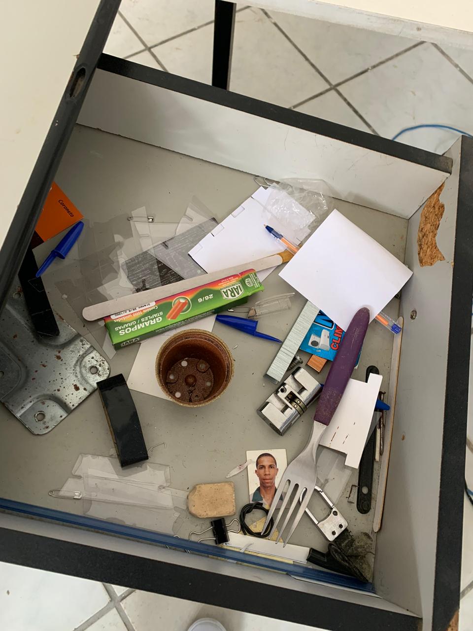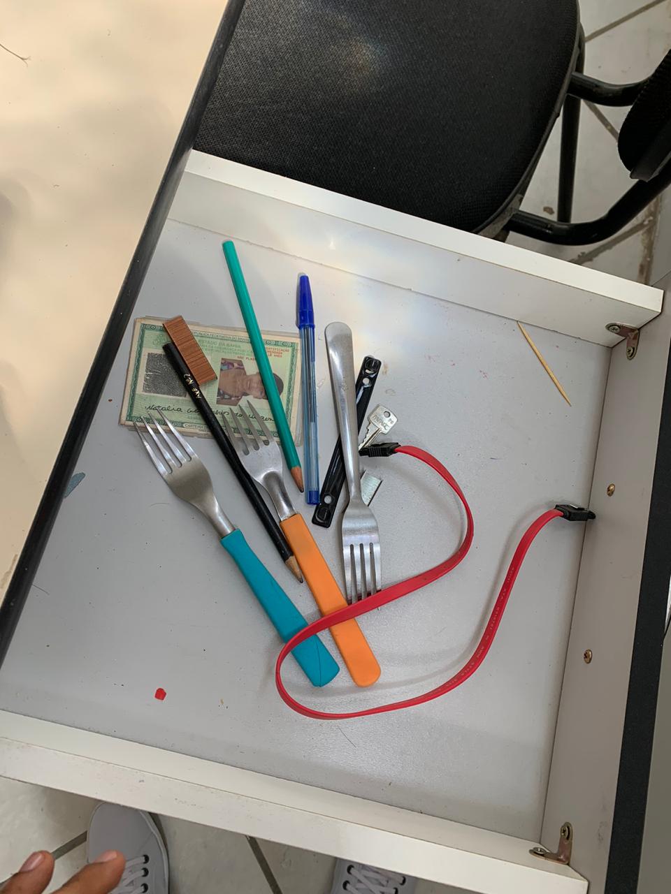 Como em varias salas da prefeitura, a Secretária de Cultura foi encontrada inacabada, com fiação solta e materiais pessoais dentro de gavetas.