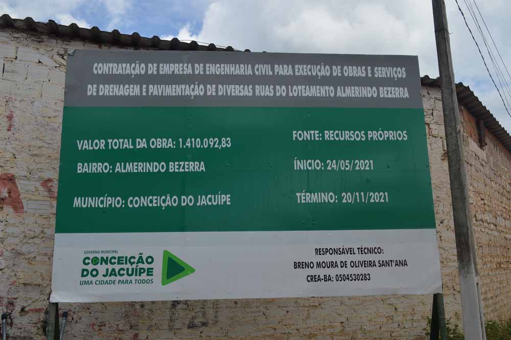 A Prefeitura de Conceição do Jacuípe, através da Secretaria de Obras, deu início às obras de drenagem e pavimentação do Loteamento Almerindo Bezerra na manhã do dia 26/07.
