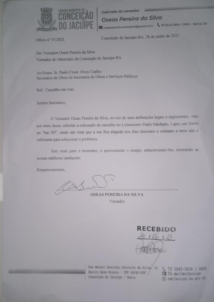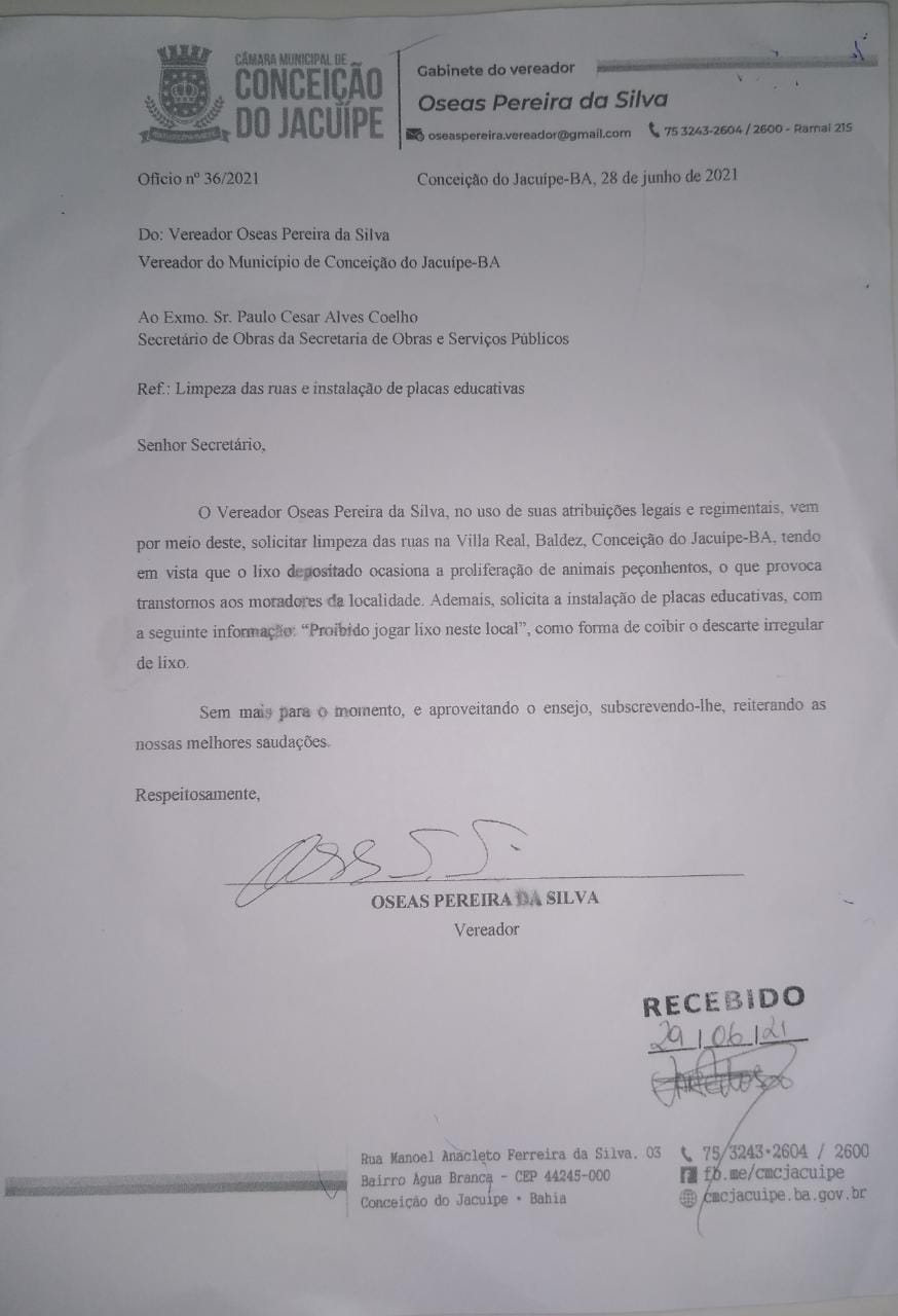 O Vereador Oseas lamentou o falecimento do pai do Vereador Jodilson Cerqueira e também cobrou a instalação de um PROCOM em Conceição do Jacuípe.