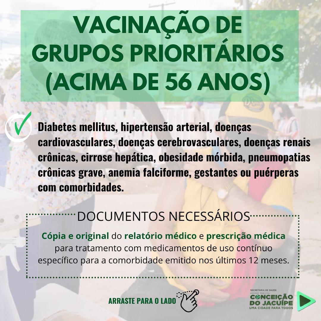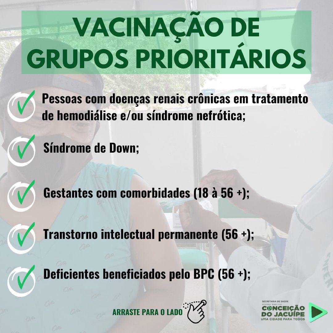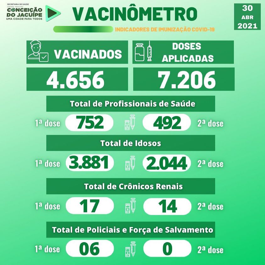 Os dados da vacinação estão atualizados até o dia 30 de abril, por isso o numero de vacinados é maior, tendo Conceição do Jacuípe avançado nas metas de vacinação.