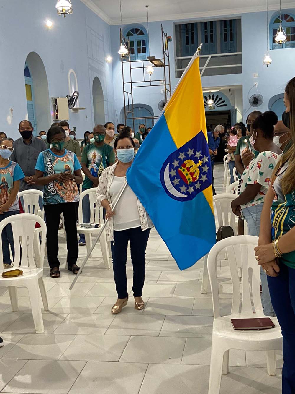 Na oportunidade, a Prefeita foi convidada a entrar carregando a bandeira da cidade logo no início da celebração.
