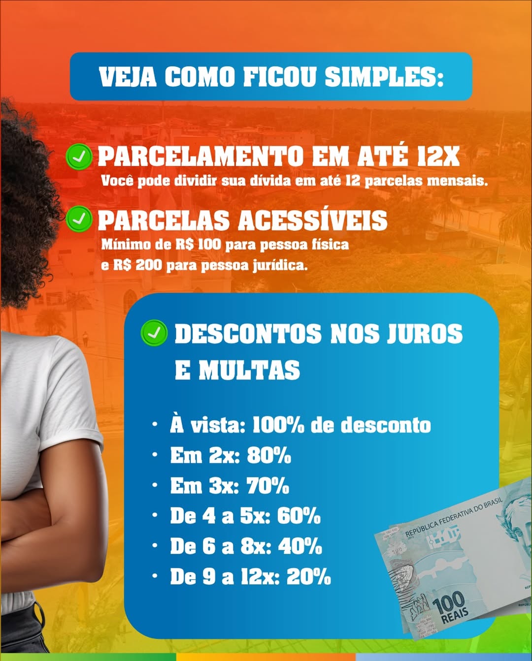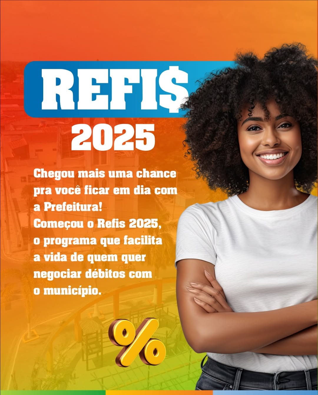 Chegou mais uma chance pra você ficar em dia com a nossa Prefs! Começou o Refis 2025, o programa que facilita a vida de quem quer negociar débitos com o município.