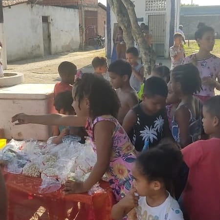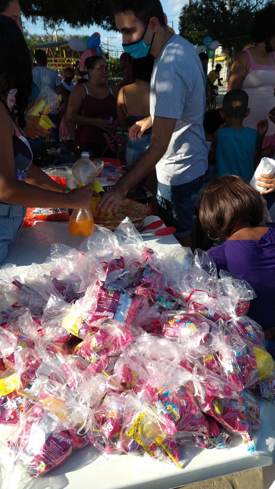 A festa contou com a distribuição de lanches: cachorro quente, pipoca, refrigerante, brindes, doces, muita brincadeiras, pula-pula e etc.