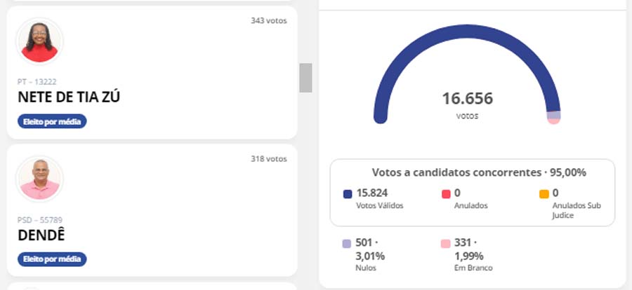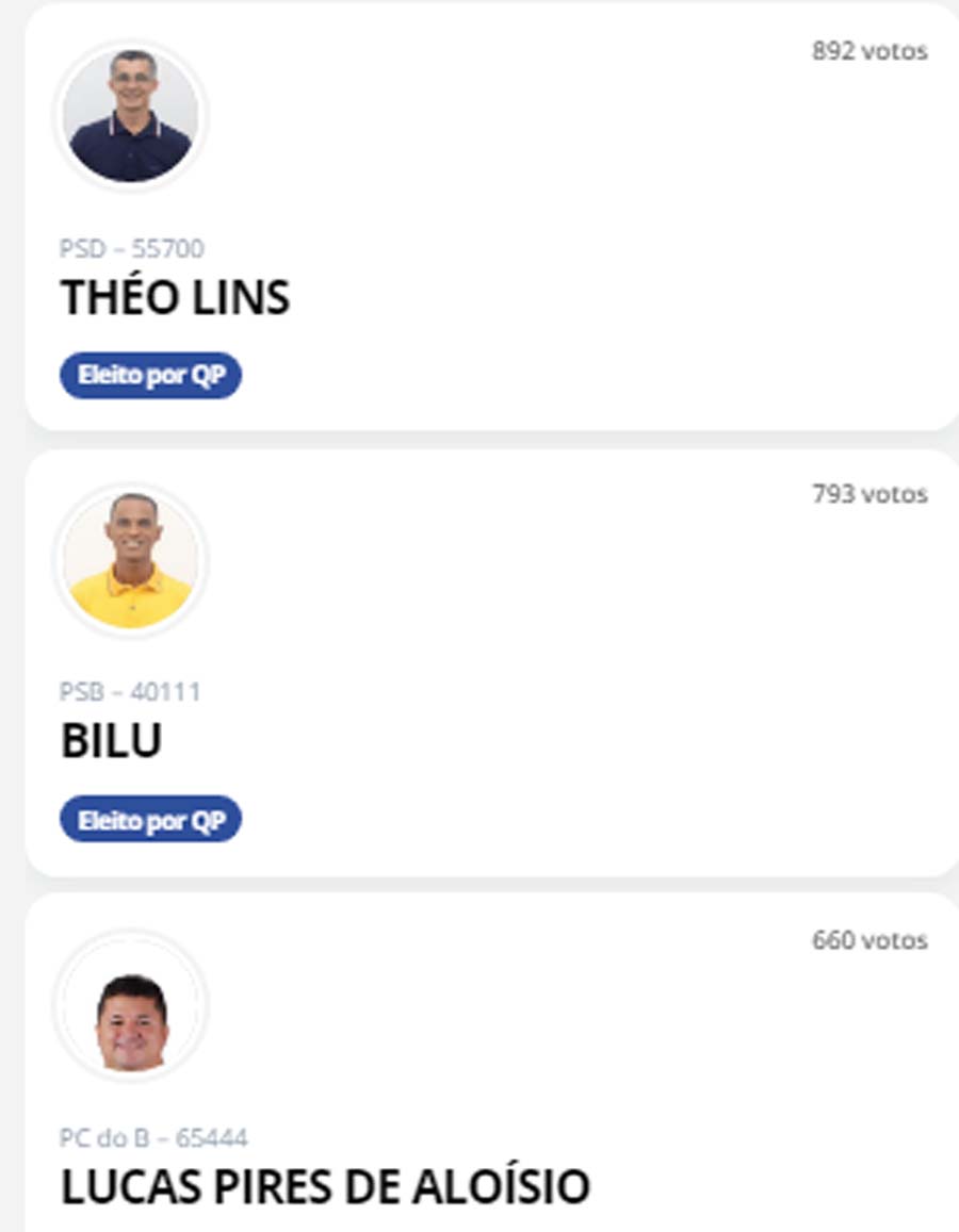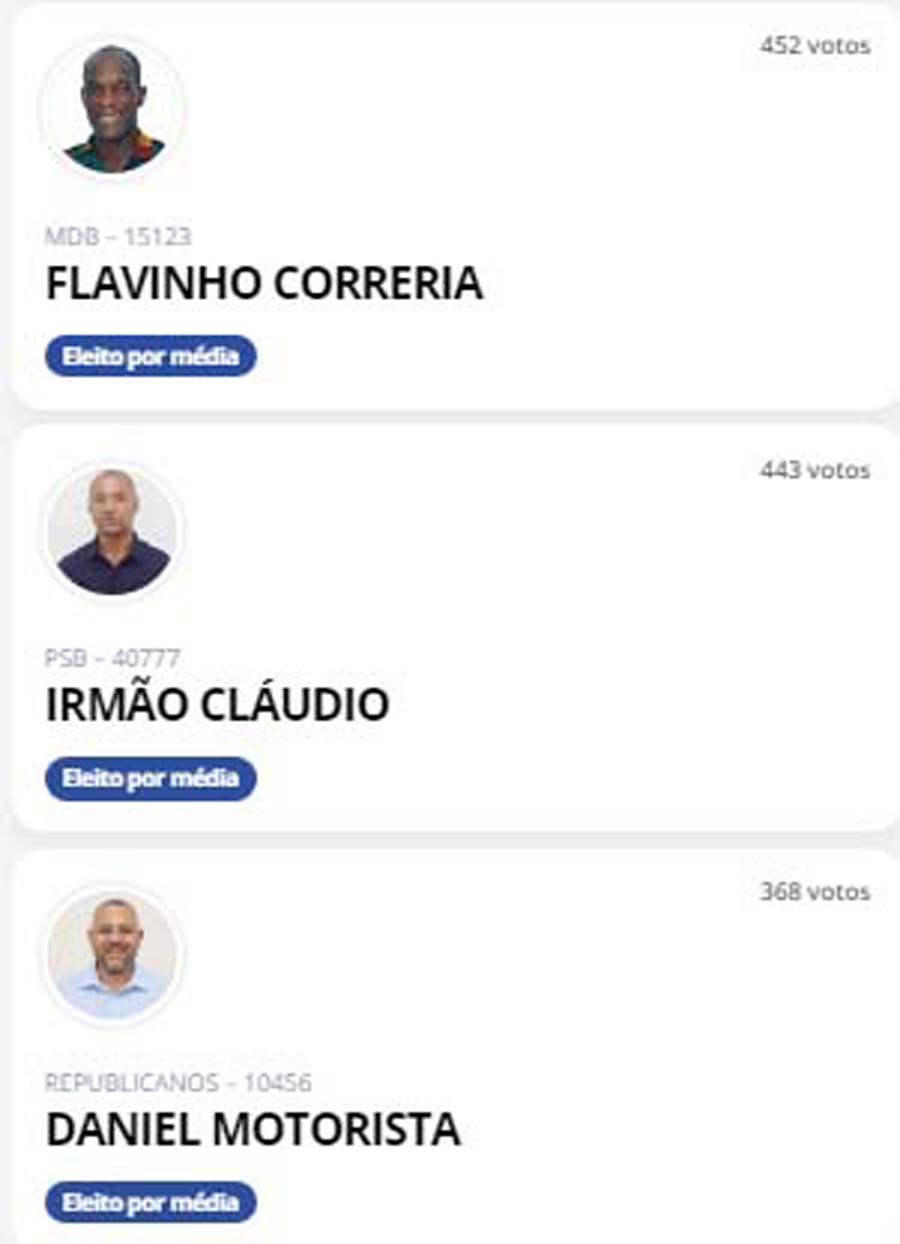 Vale ressaltar a baixa votação e personalidades políticas como Paulo Falcão, com apenas 70 votos.