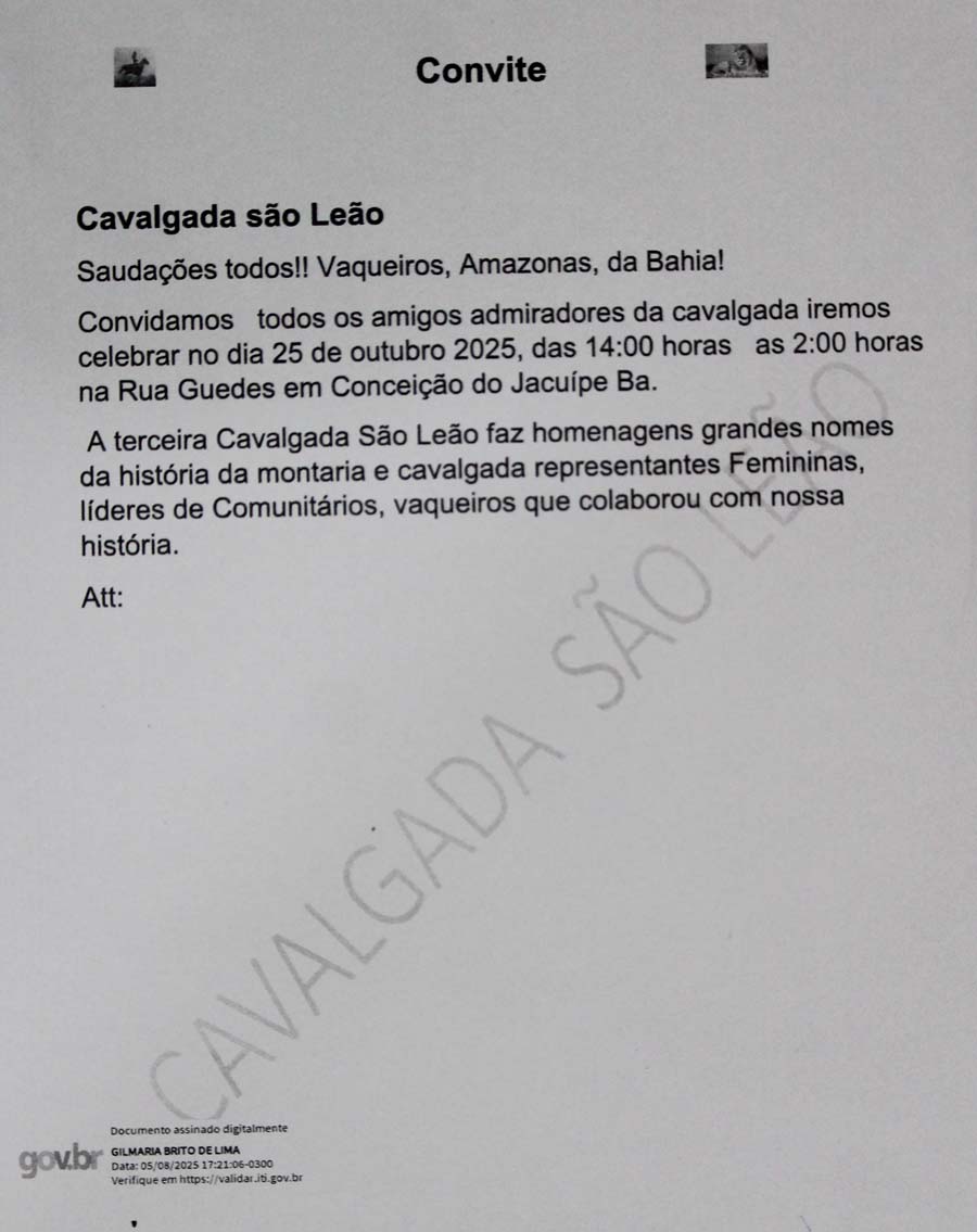 O Vereador Oseas destacou ainda a cavalgada que acontecerá no próximo dia 25, reforçando o valor das tradições locais e o fortalecimento da cultura.