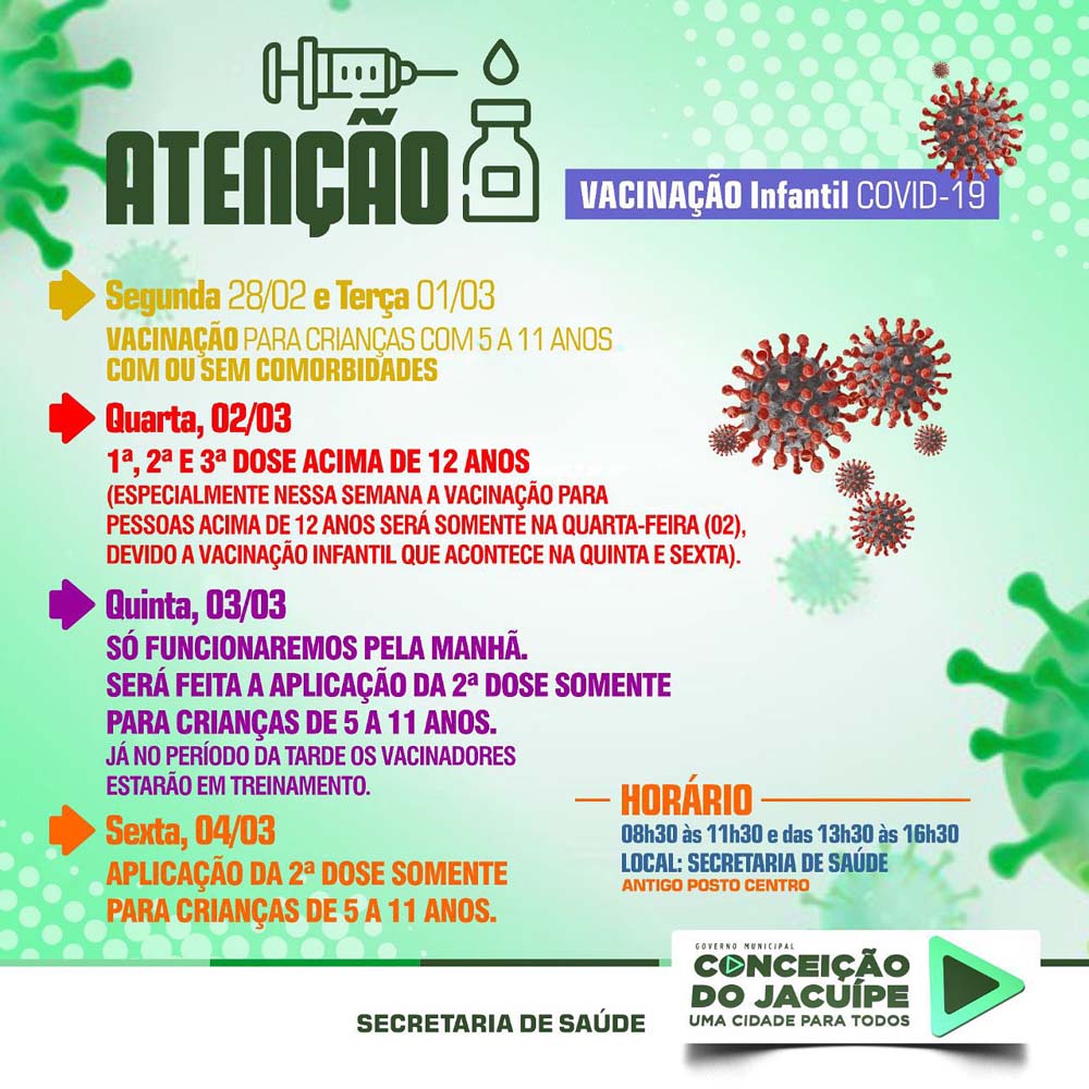 Prefeitura inicia vacinação de crianças de 5 a 11 anos em Conceição do Jacuípe.