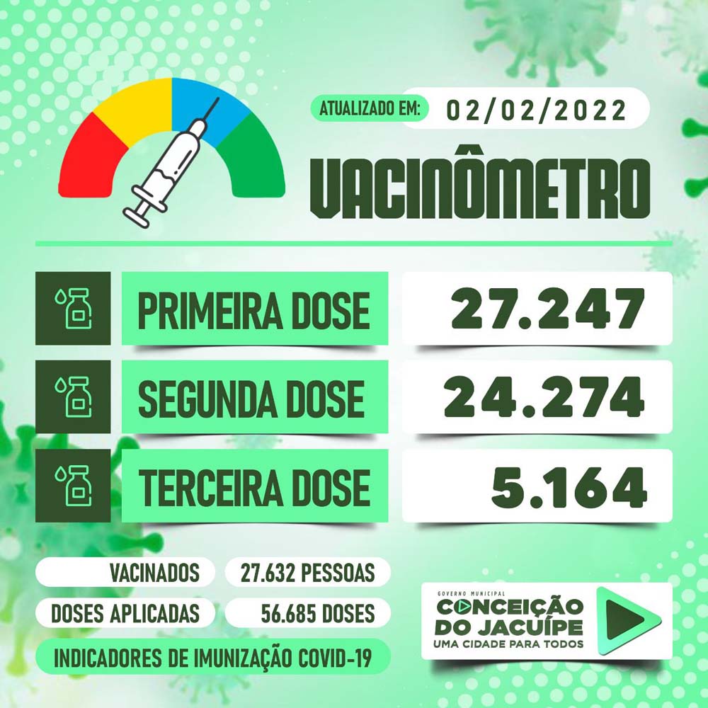 VACINÔMETRO: Prefeitura divulga dados da vacinação contra COVID-19 em Conceição do Jacuípe.