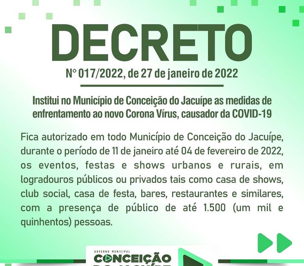 Prefeitura de Conceição do Jacuípe publica novas medidas de enfrentamento à COVID-19.