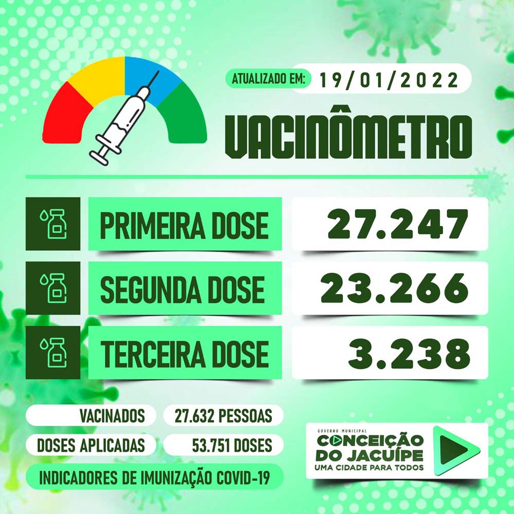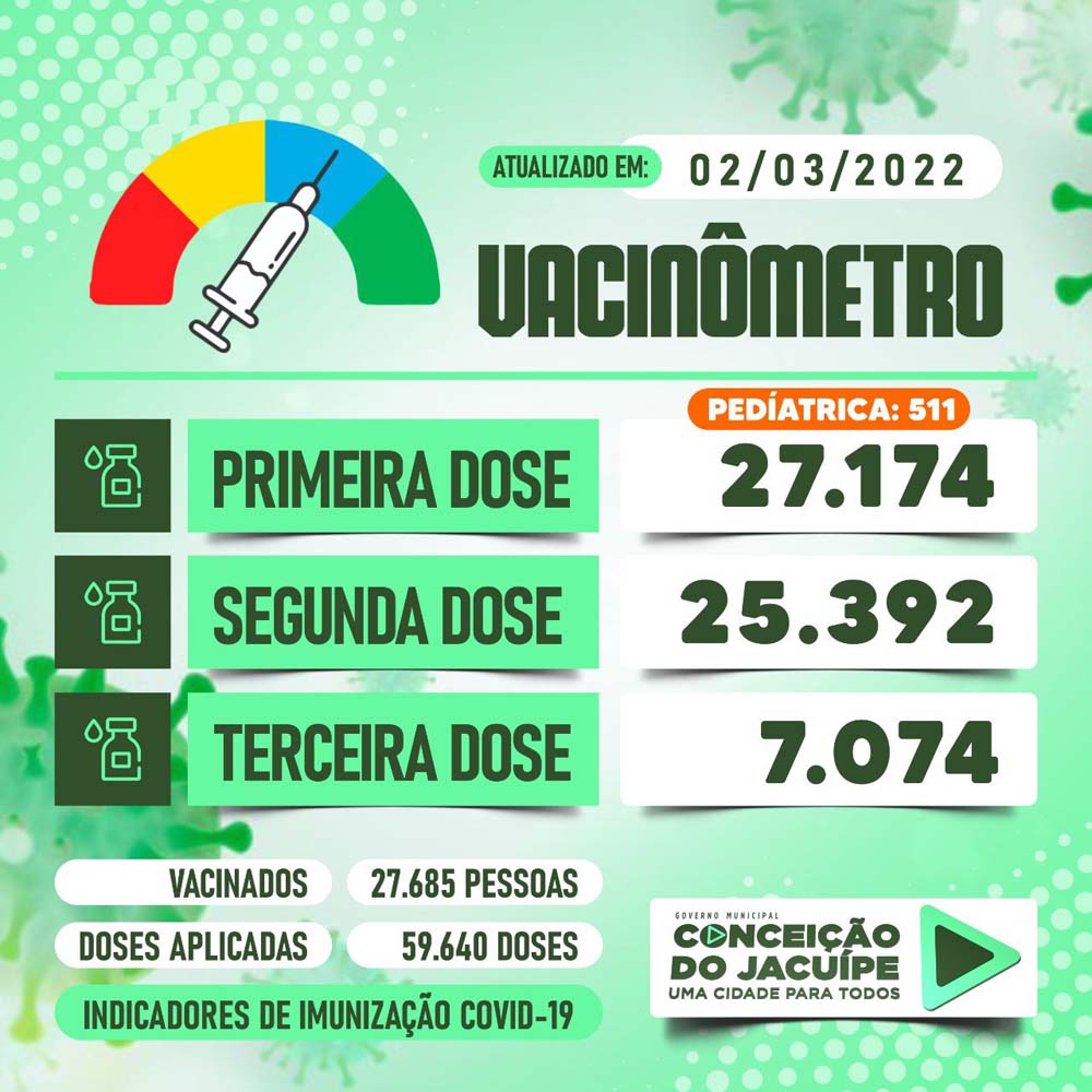 VACINÔMETRO: Confira os números atualizados da vacinação contra a COVID-19 em Conceição do Jacuípe.