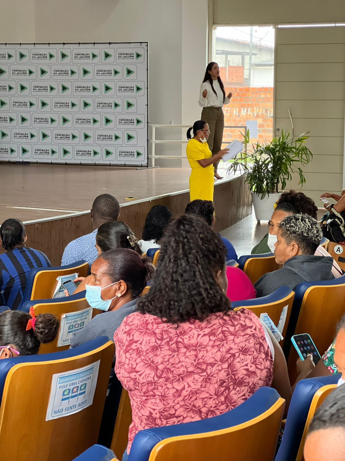 Presidente Flávia fala a exonerados da prefeitura de Conceição do Jacuípe