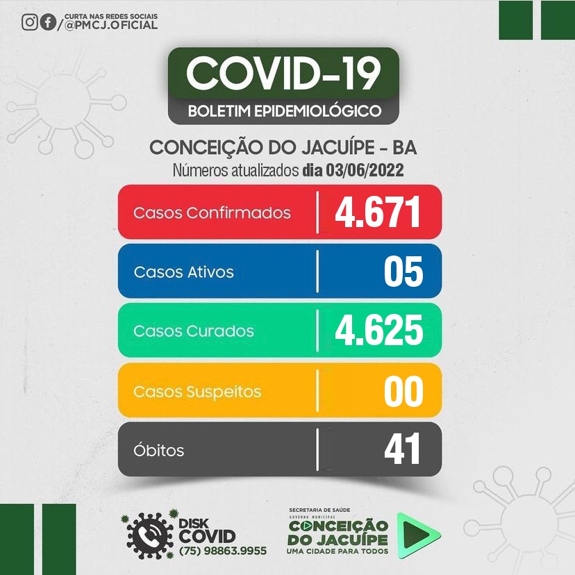 VACINÔMETRO: Prefeitura divulga atualização dos números da COVID-19 em Conceição do Jacuípe.