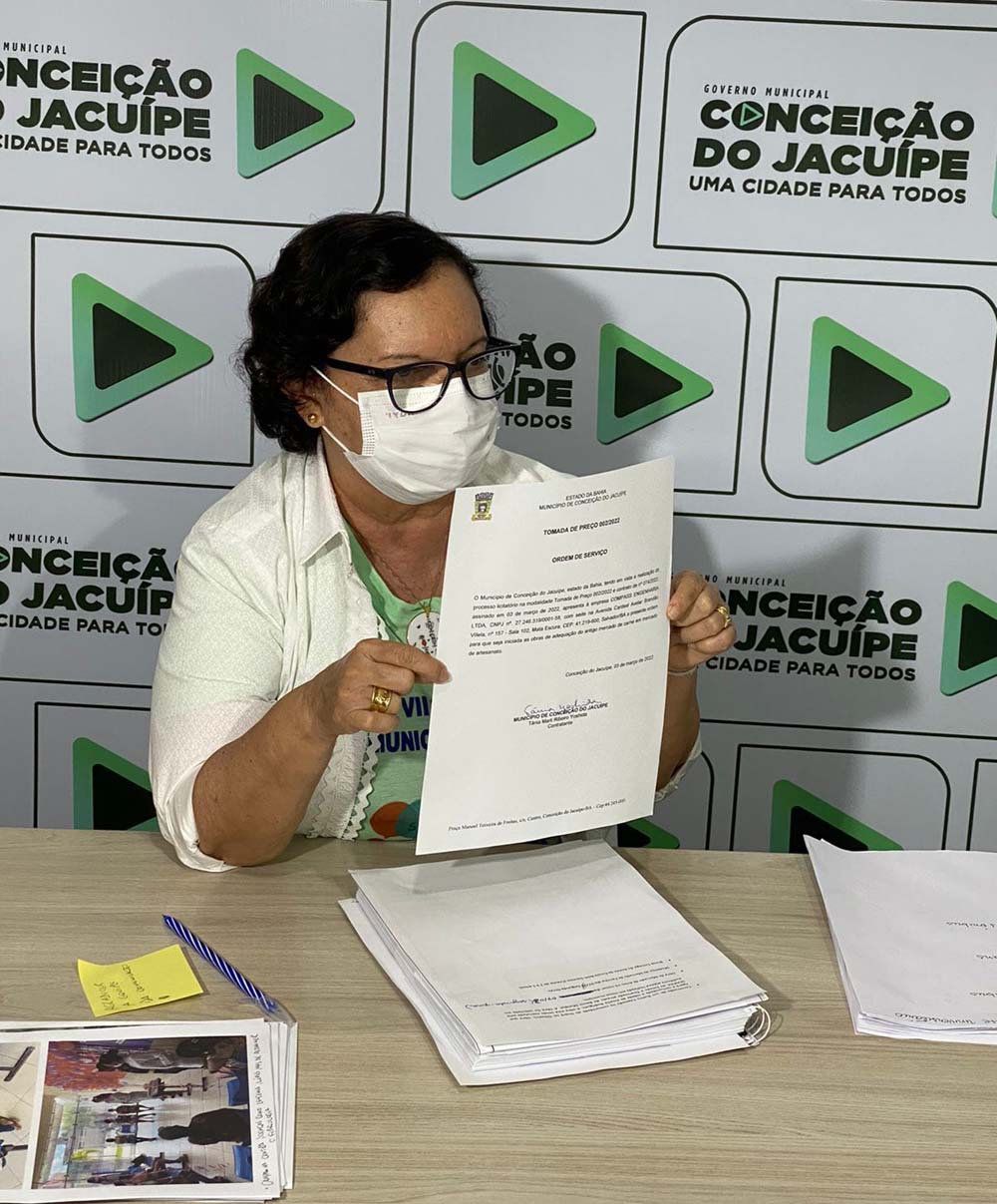 Após indicação do Vereador Bruno Nery, Prefeita assinar ordem de serviço para construção do mercado de arte de Conceição do Jacuípe.