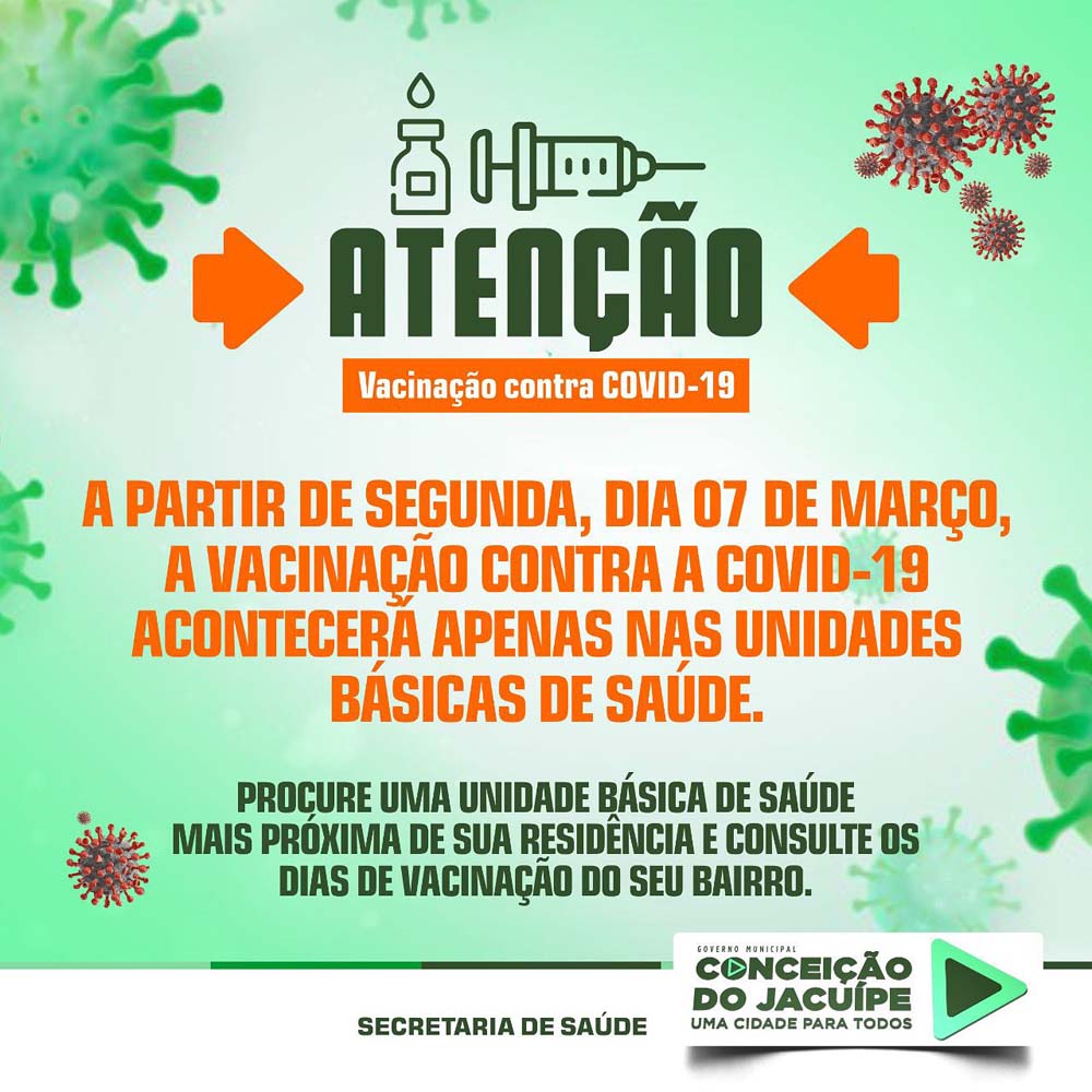 Vacinação contra Covid será feita somente nas Unidades de Saúde em Conceição do Jacuípe
