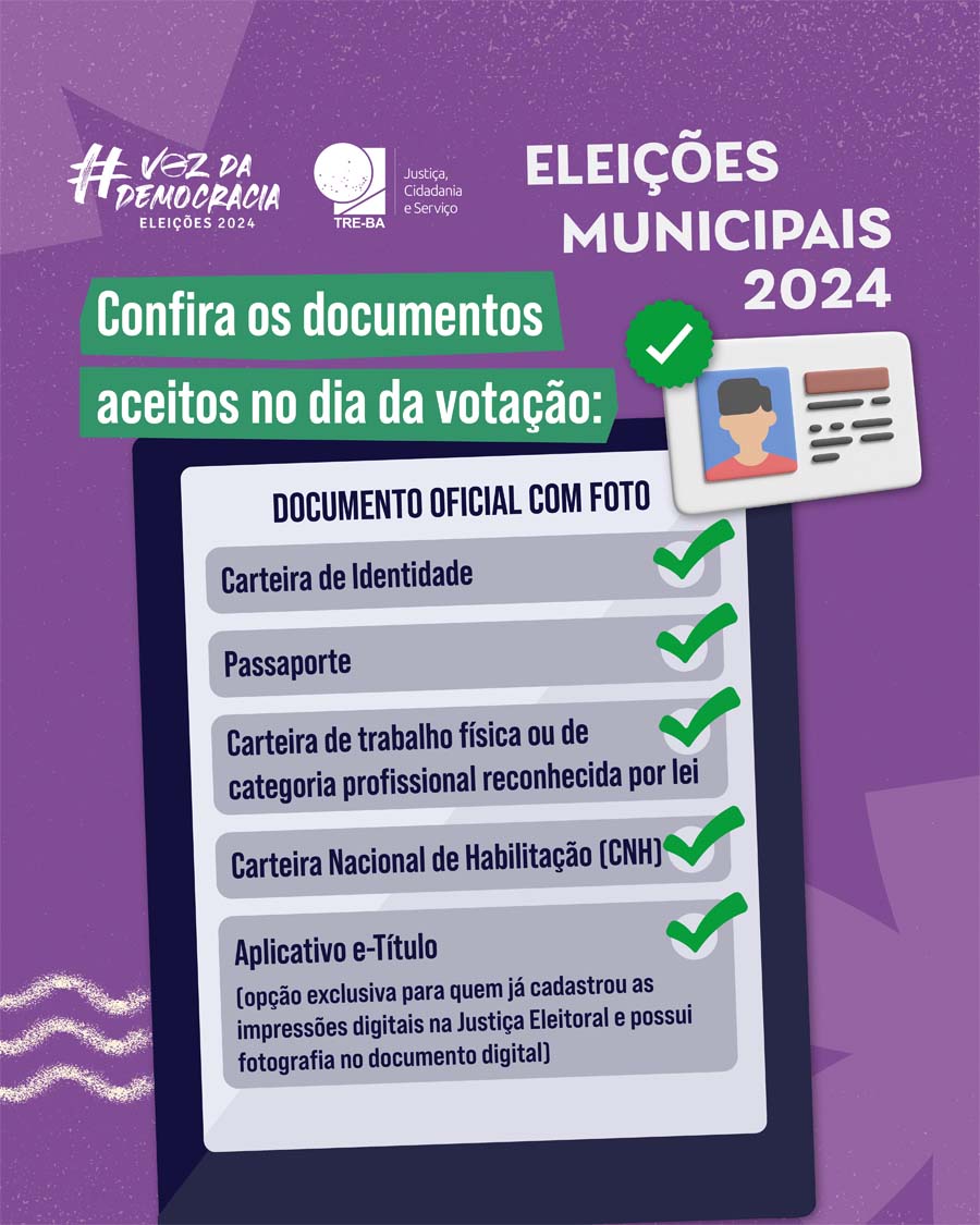 Além disso, o TRE reforça a importância de levar um documento oficial com foto no dia da eleição, como o RG, carteira de motorista ou passaporte, para garantir o direito ao voto.