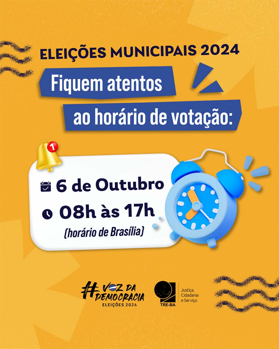 O horário de votação também foi destacado: os eleitores devem comparecer entre 8h e 17h.