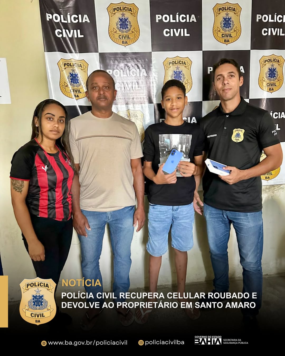 Policia Civil recupera celular roubado e devolve a proprietária em Coração de Maria