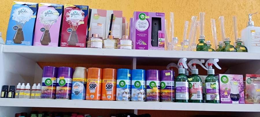 Outro segmento em evidência são os cheirinhos e difusores ambientais, ideais para manter os espaços agradáveis e perfumados.