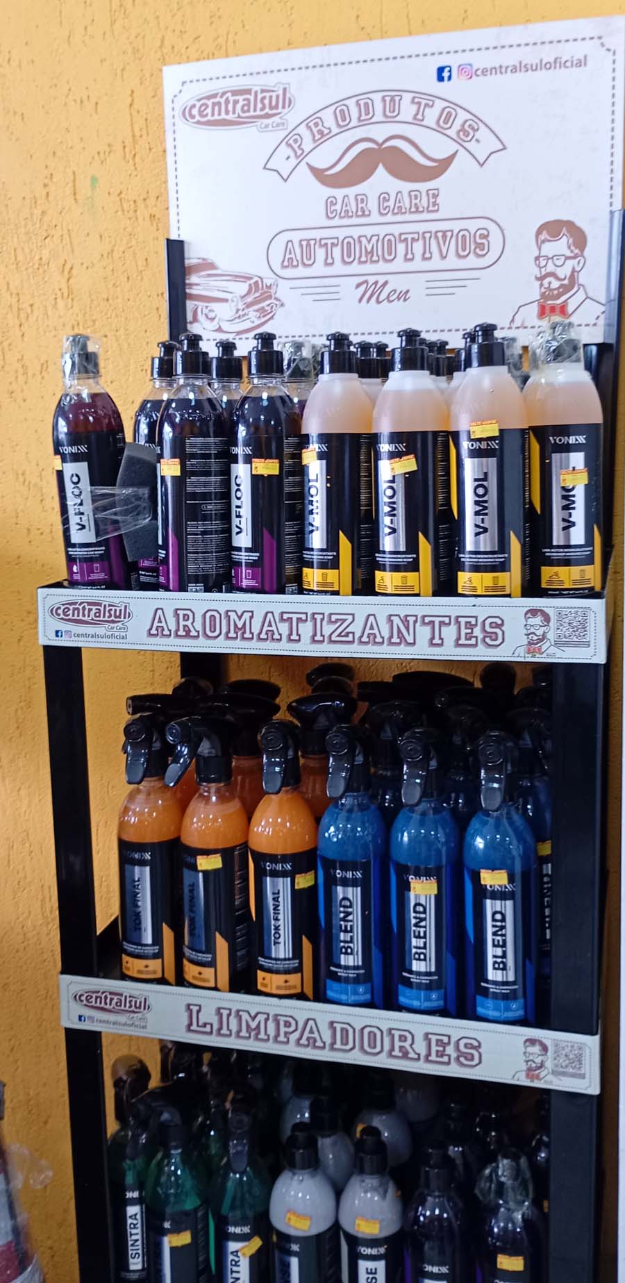 A distribuidora JMF também disponibiliza produtos da linha Vonix, voltados para cuidados automotivos, além de mop giratórios que facilitam a limpeza do dia a dia.