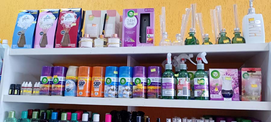 Outro segmento em evidência são os cheirinhos e difusores ambientais, ideais para manter os espaços agradáveis e perfumados.